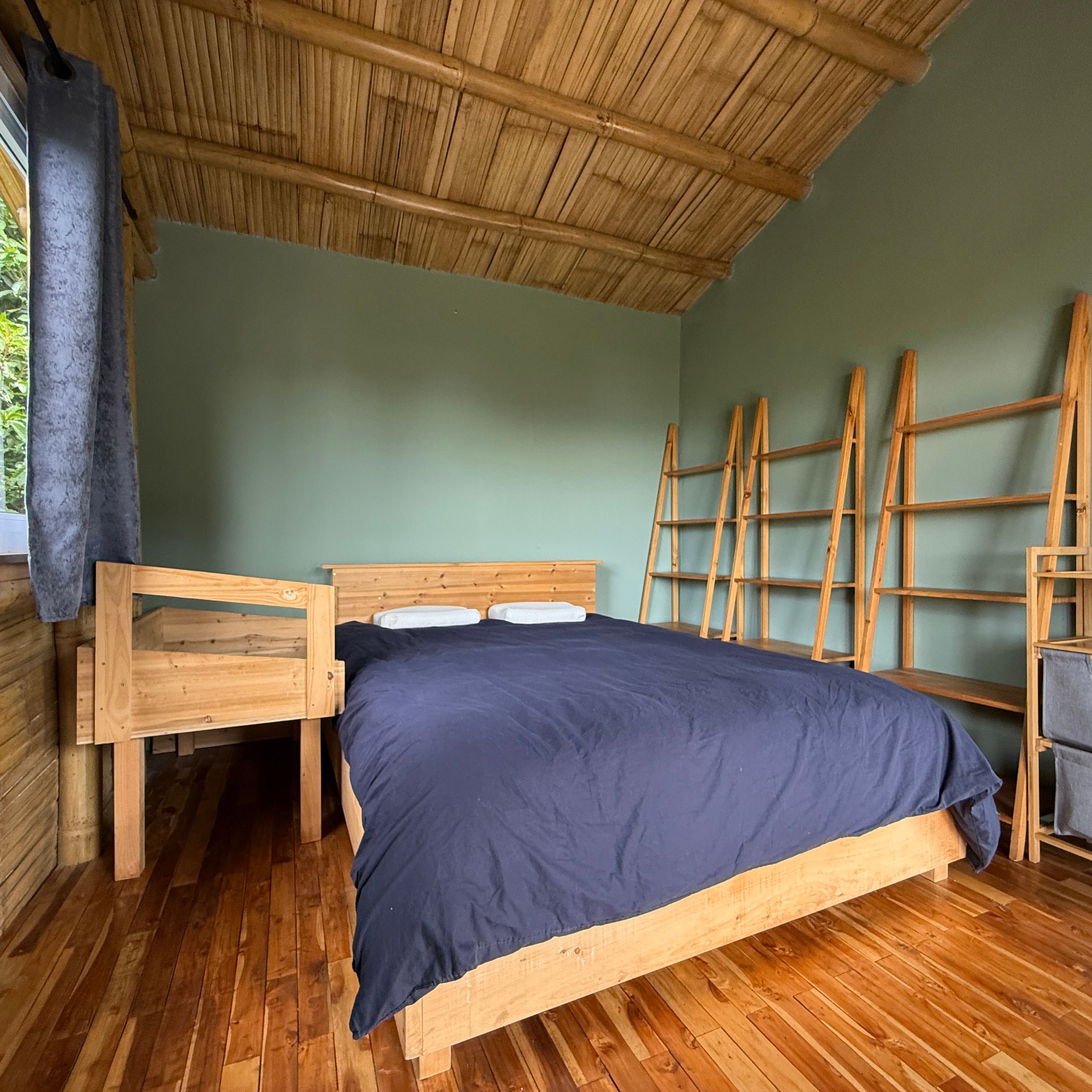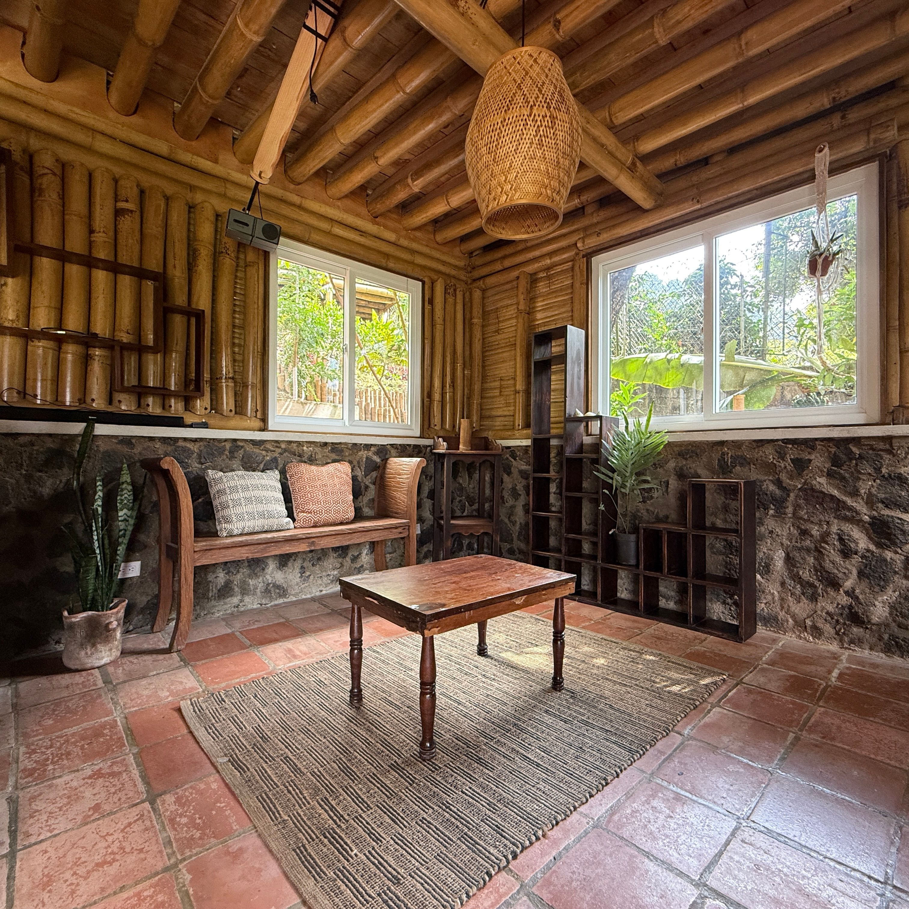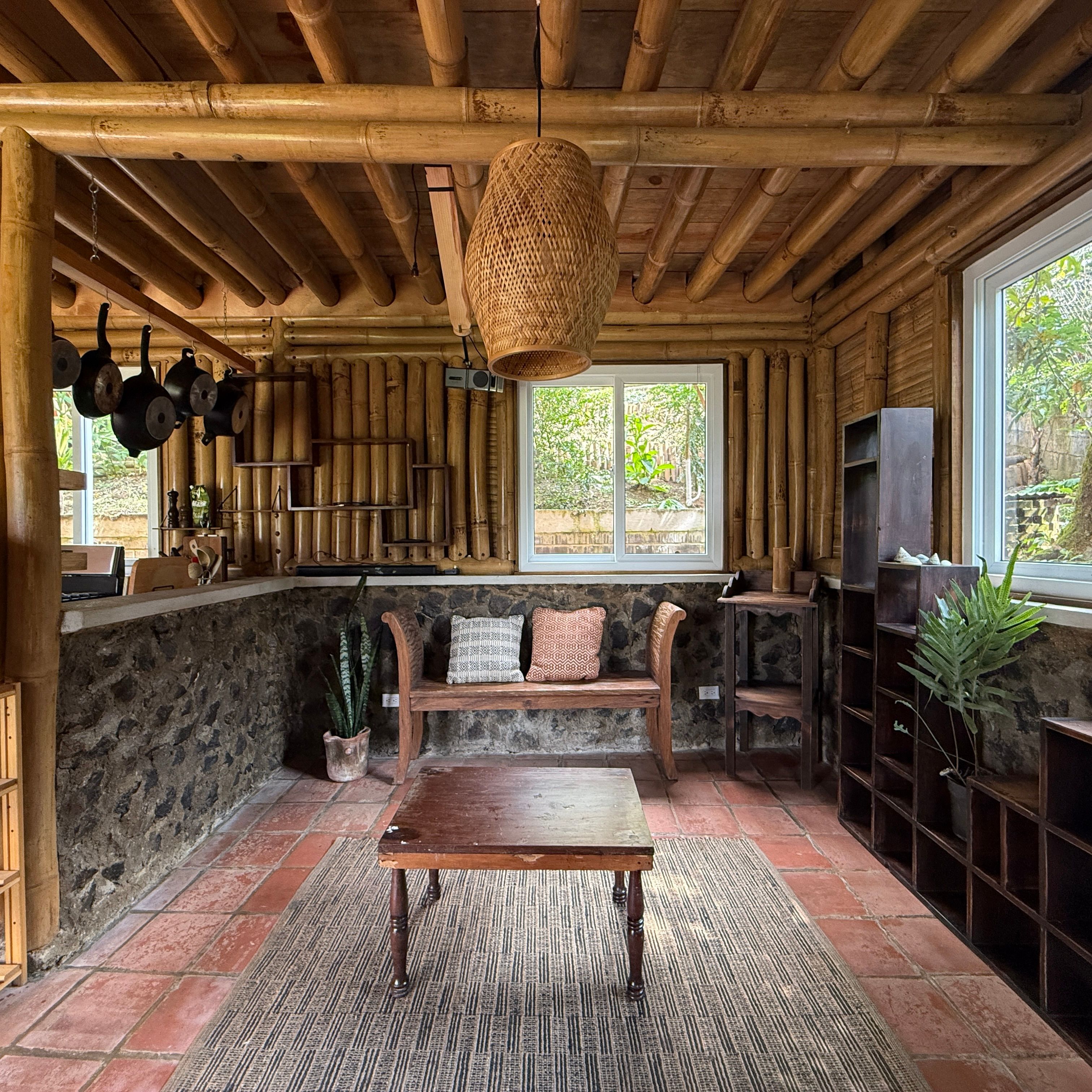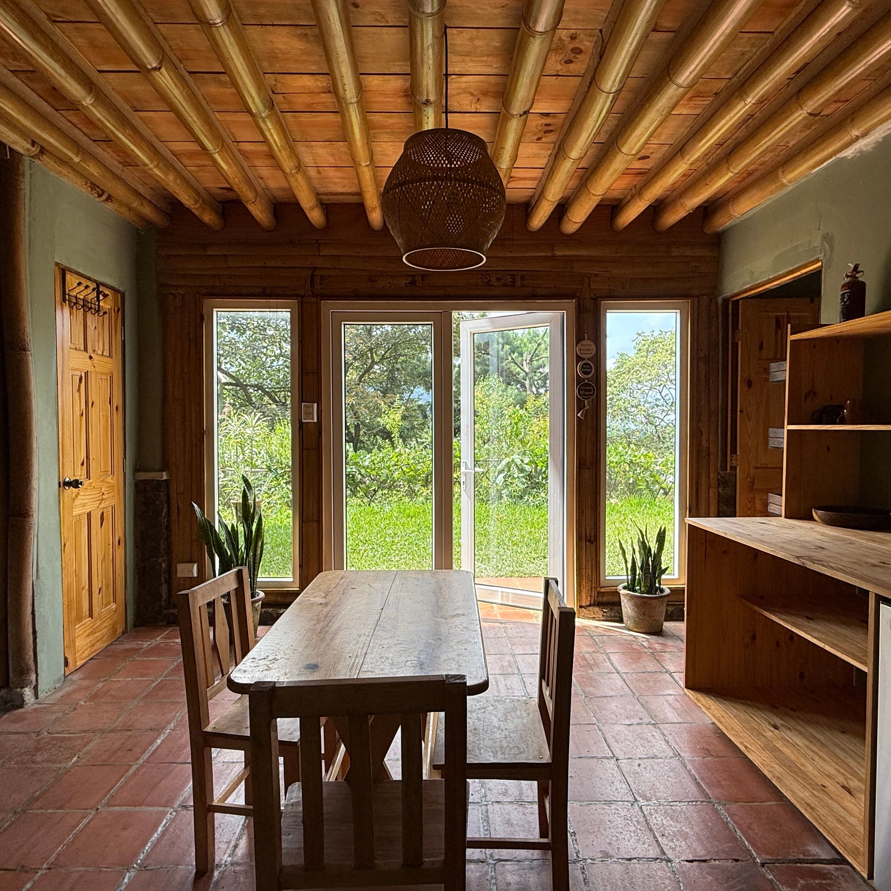Each cabin features a design that seamlessly combines rustic charm and modern comforts, with beautiful wood and bamboo accents. The complex is set in an open common space where you can enjoy the tranquility of the environment and even cultivate your own small garden.