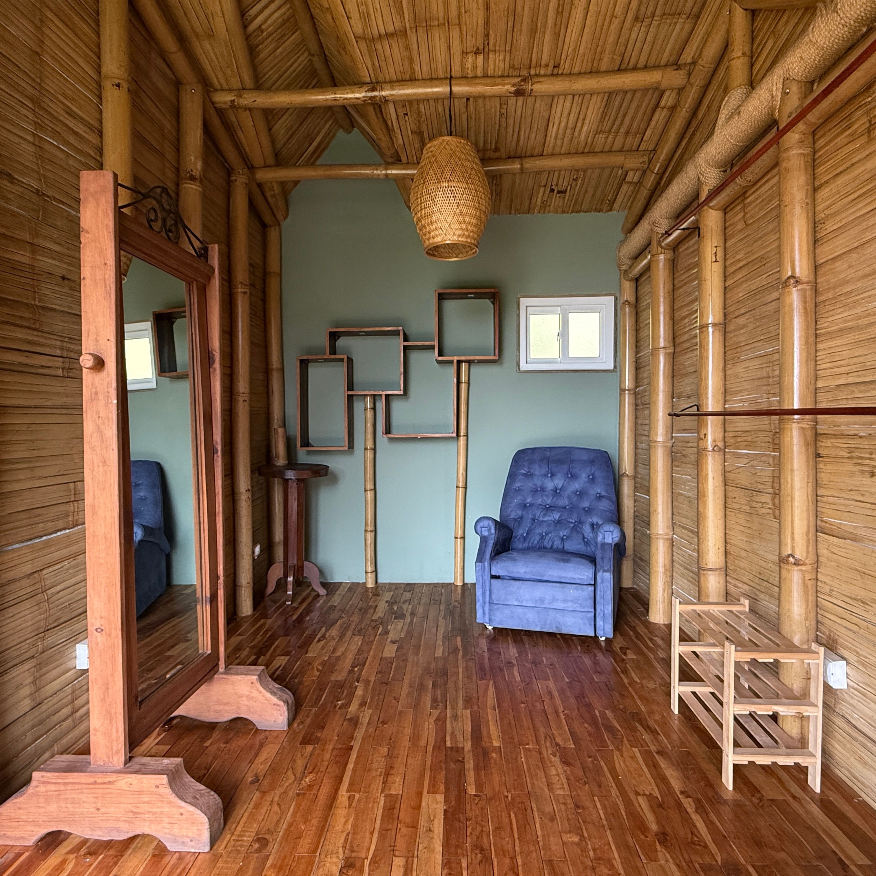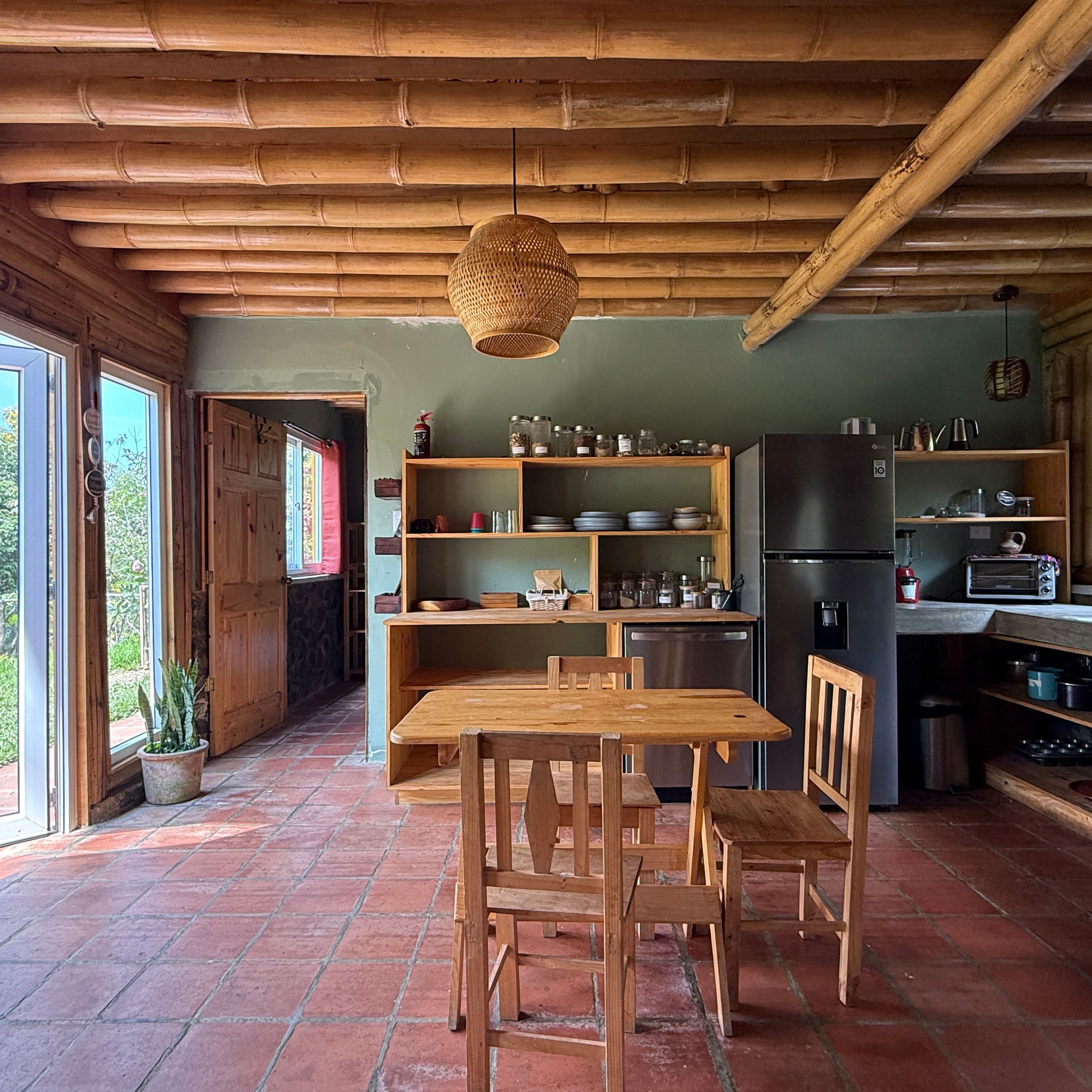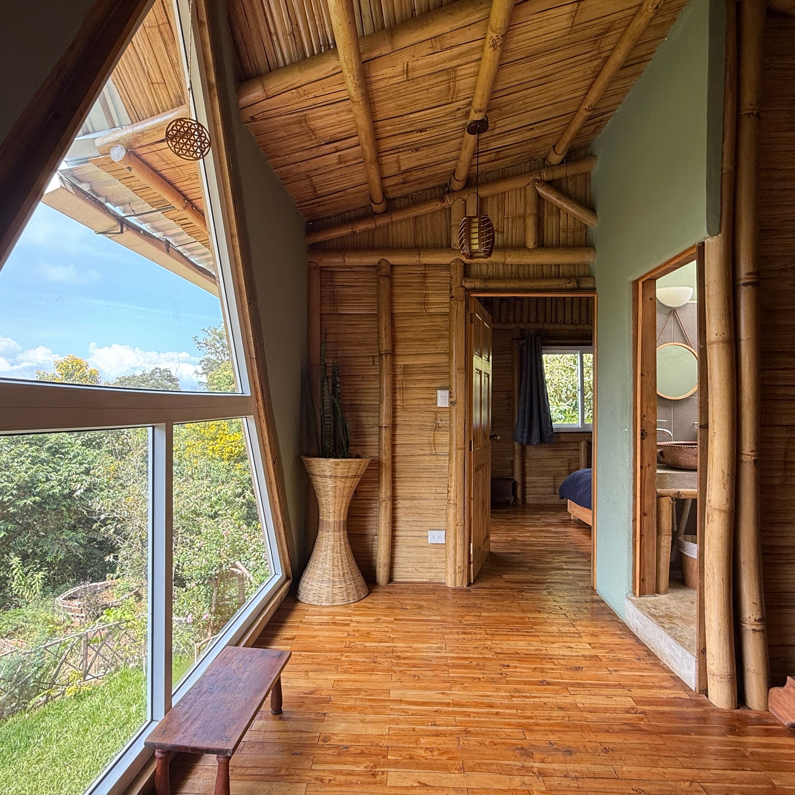 Each cabin features a design that seamlessly combines rustic charm and modern comforts, with beautiful wood and bamboo accents. The complex is set in an open common space where you can enjoy the tranquility of the environment and even cultivate your own small garden.