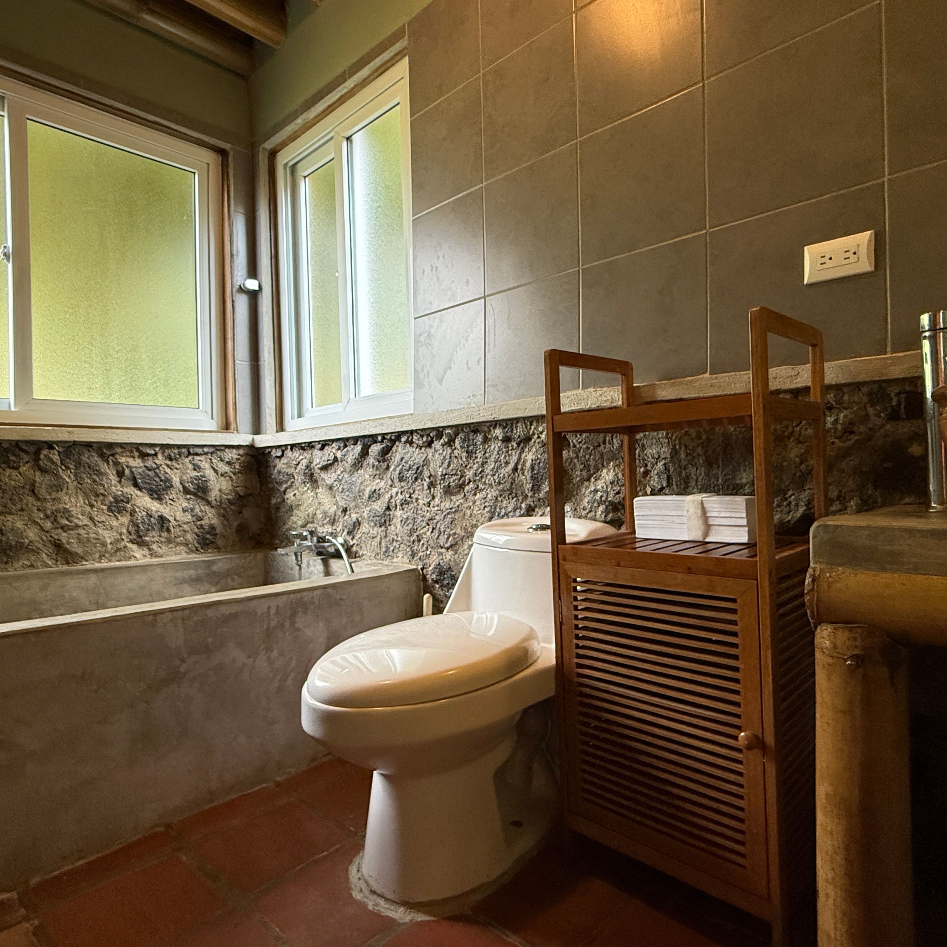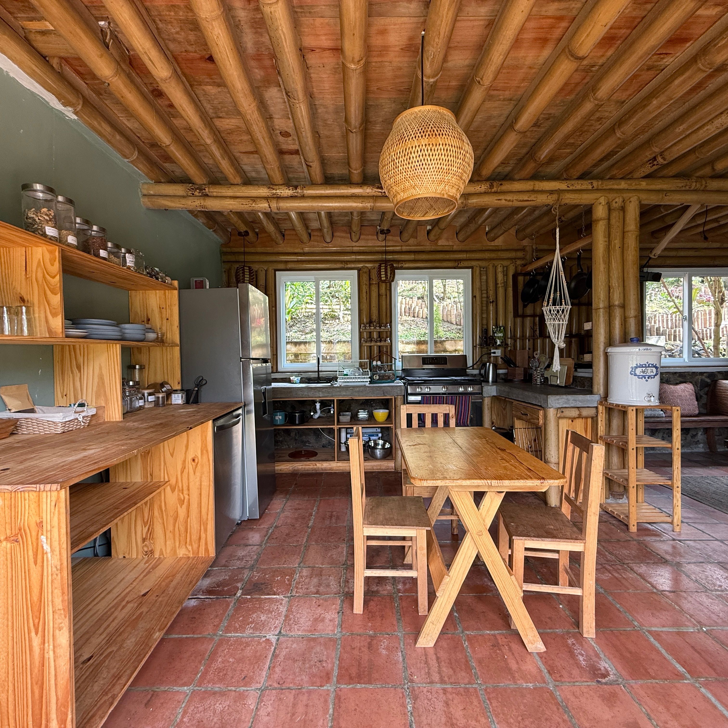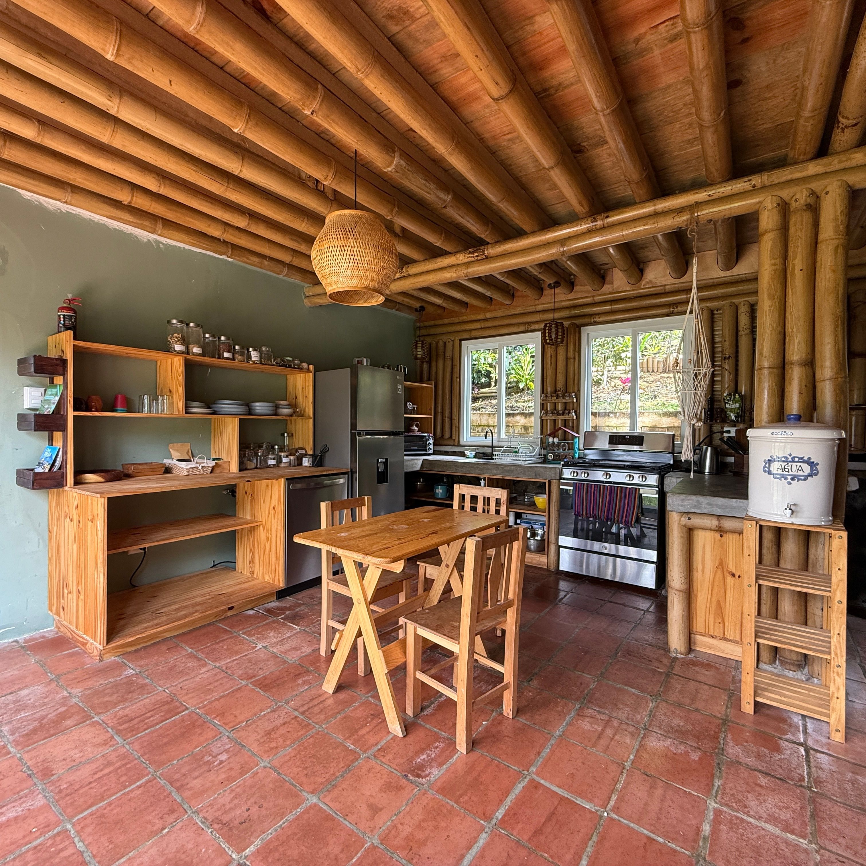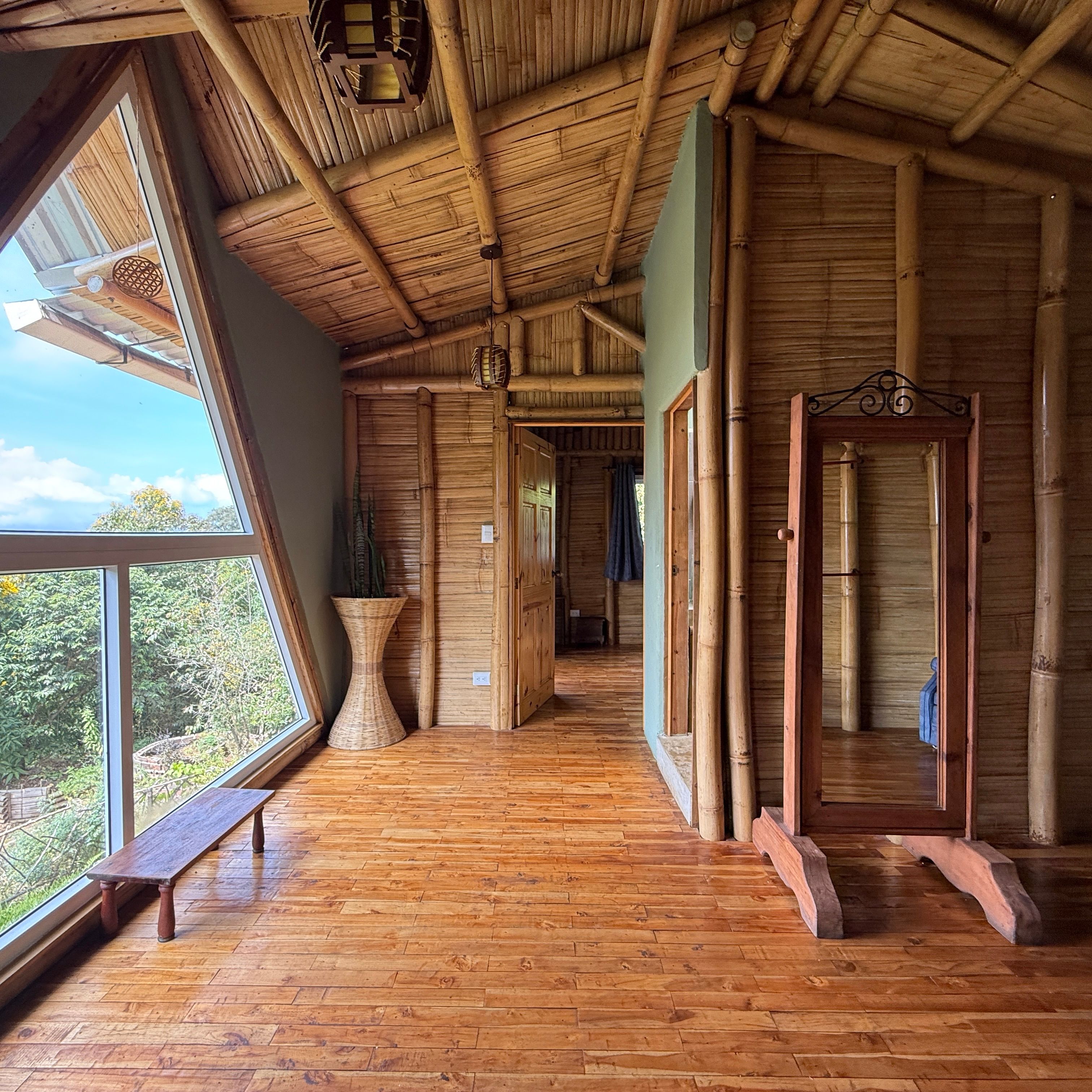 Each cabin features a design that seamlessly combines rustic charm and modern comforts, with beautiful wood and bamboo accents. The complex is set in an open common space where you can enjoy the tranquility of the environment and even cultivate your own small garden.