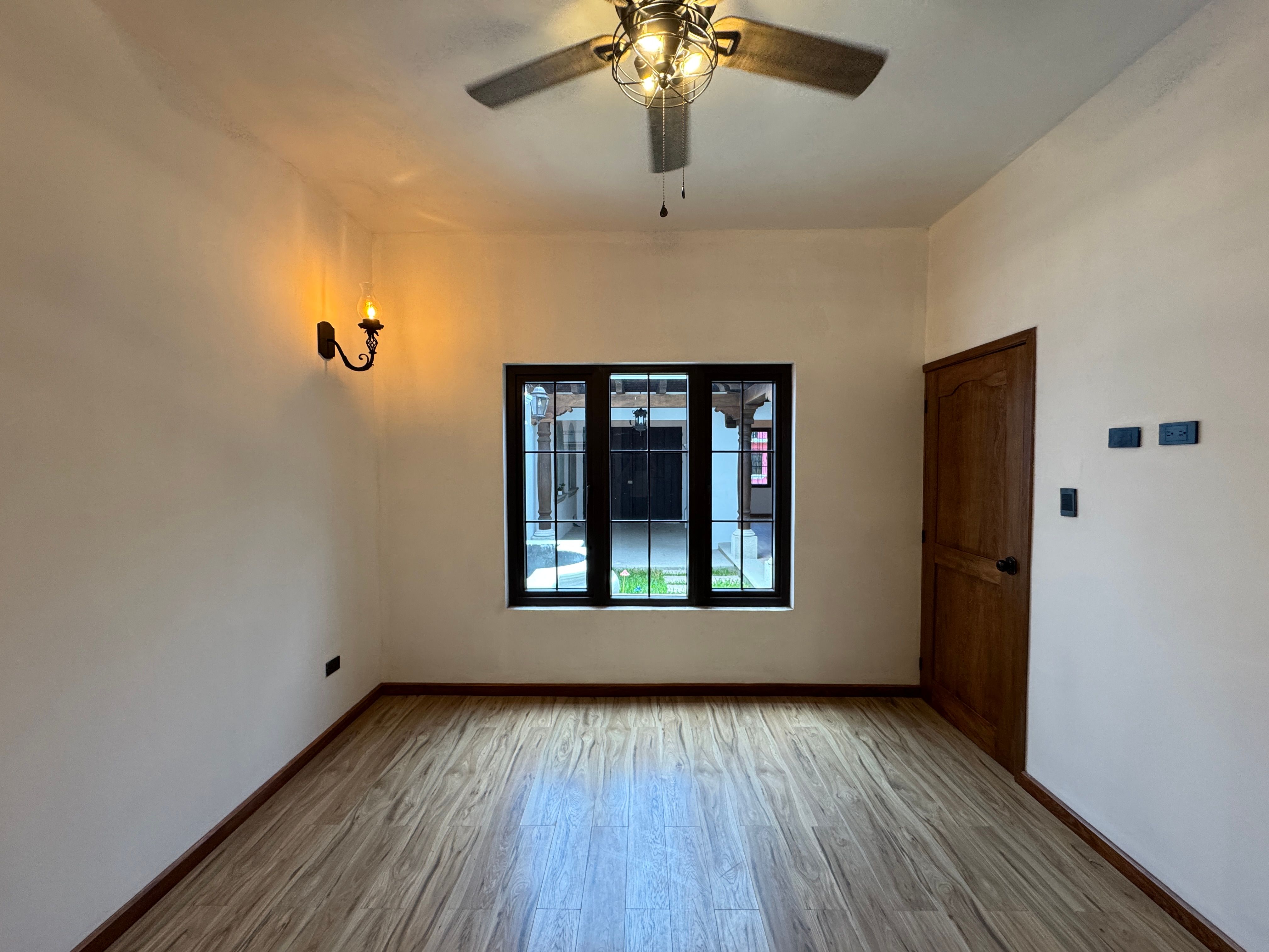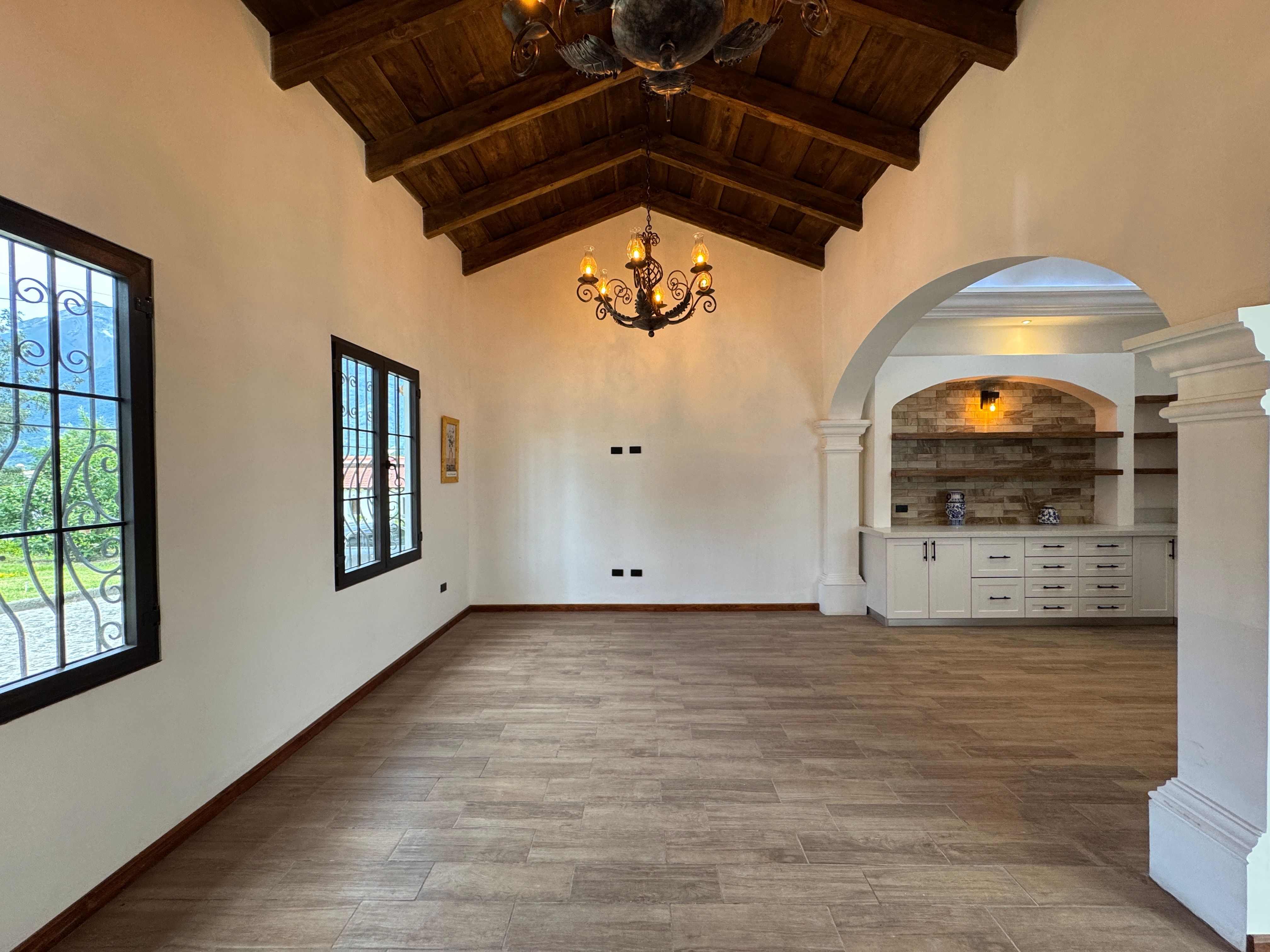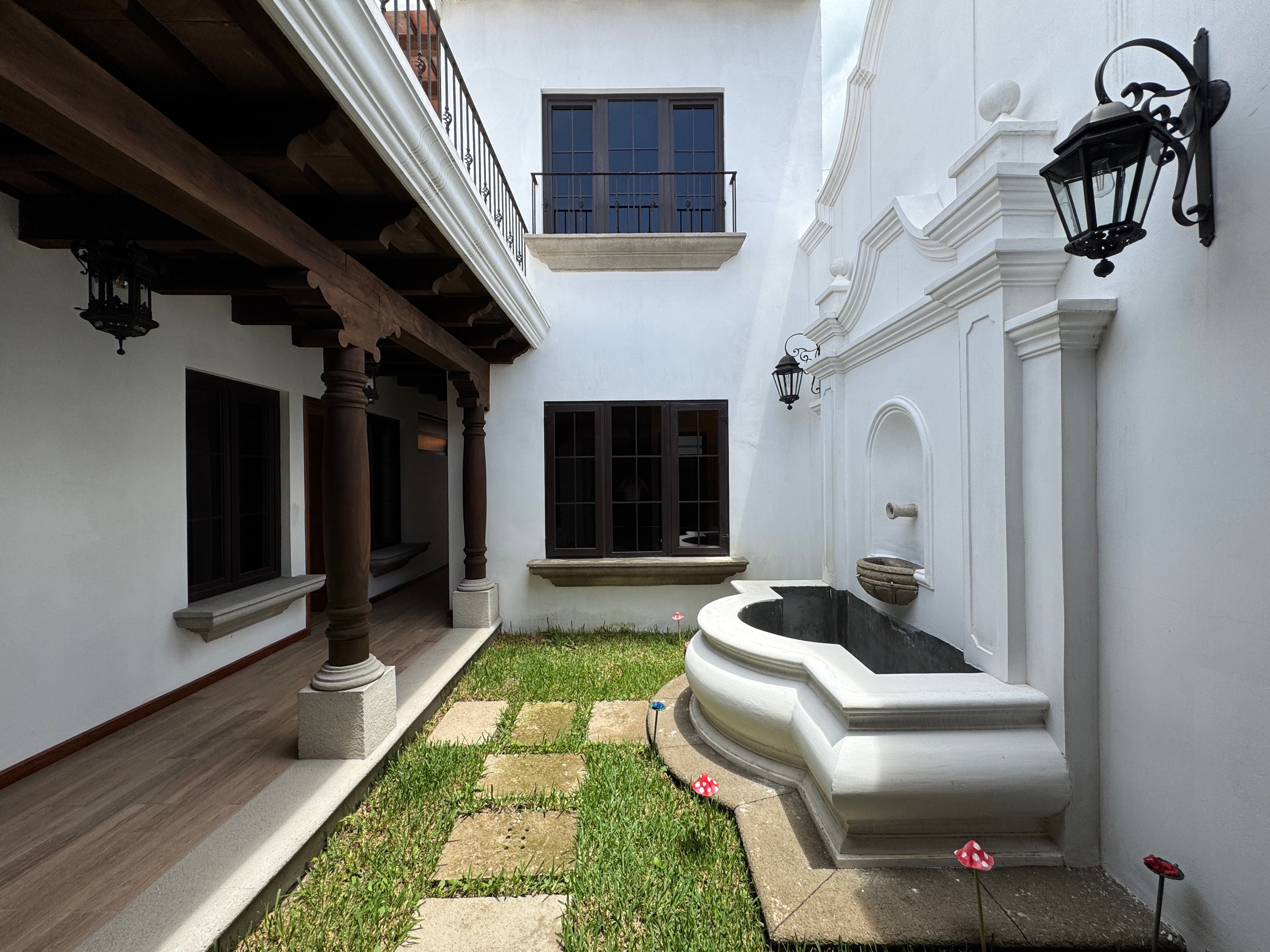Hacienda San Juan is known for being a condominium with only a few properties, which ensures a very peaceful and serene environment. It has a security gate for your peace of mind and a small park with green space and a stunning view of the three volcanoes, offering a perfect setting to relax and enjoy the landscape.