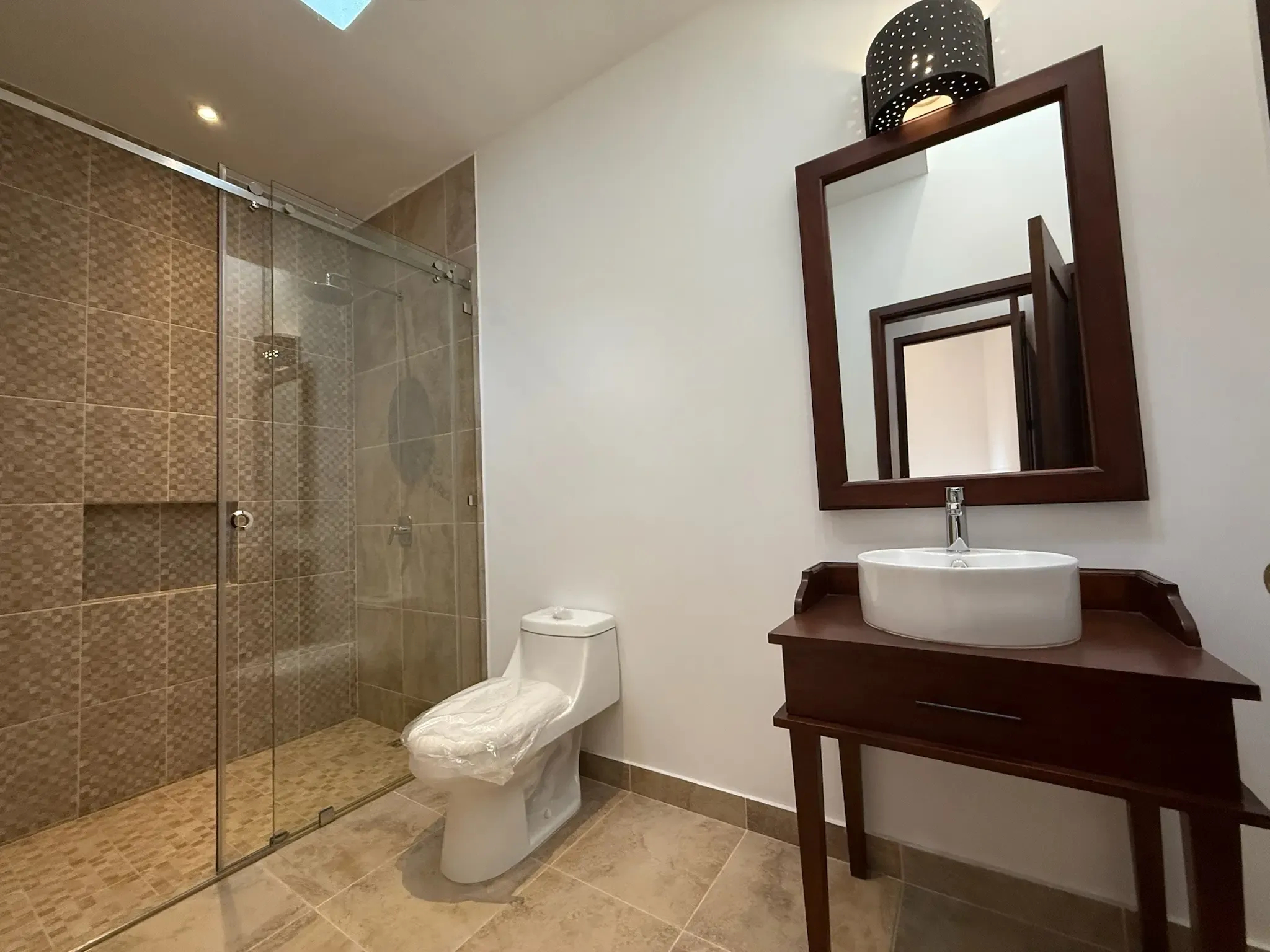 Brand new single store home. Designed to offer comfort, functionality, and style. It features colonial details such as a Spanish-style terrace, hand-painted tiles, solid wood in the pergola, closets, bathroom fixtures, and kitchen cabinets, as well as wood-grain PVC windows, spacious, well lit, and thoughtfully laid out spaces, ideal for family life.