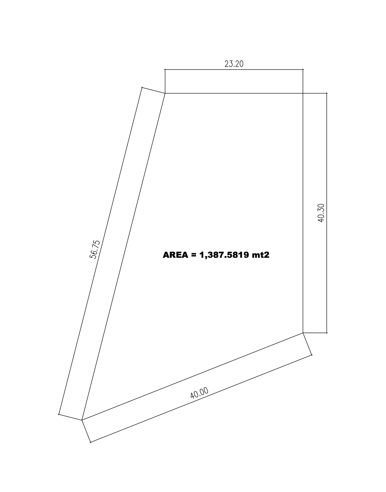 This property has an almost flat topography on a plot with a front of 23.20m x 56m depth, making a total land area of 1,387m² (1,985 vrs2).