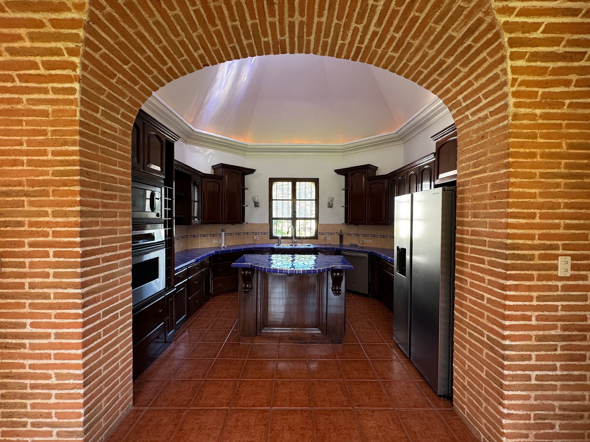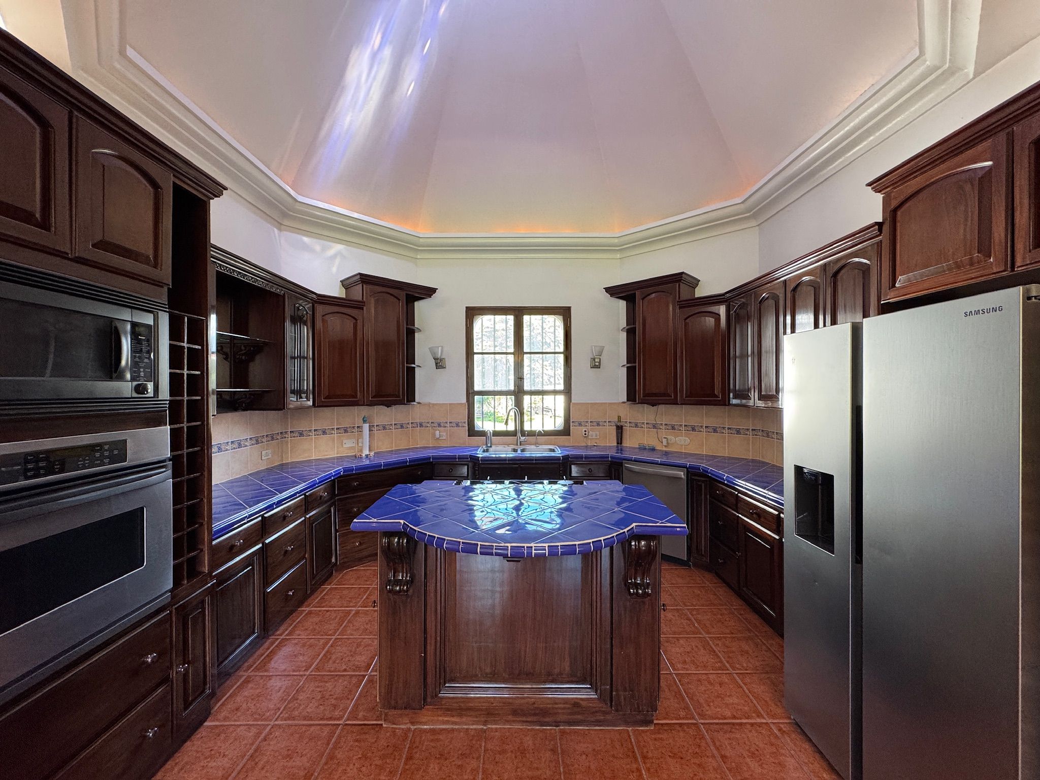 - Kitchen with fine solid carved wood cabinets and traditional dome