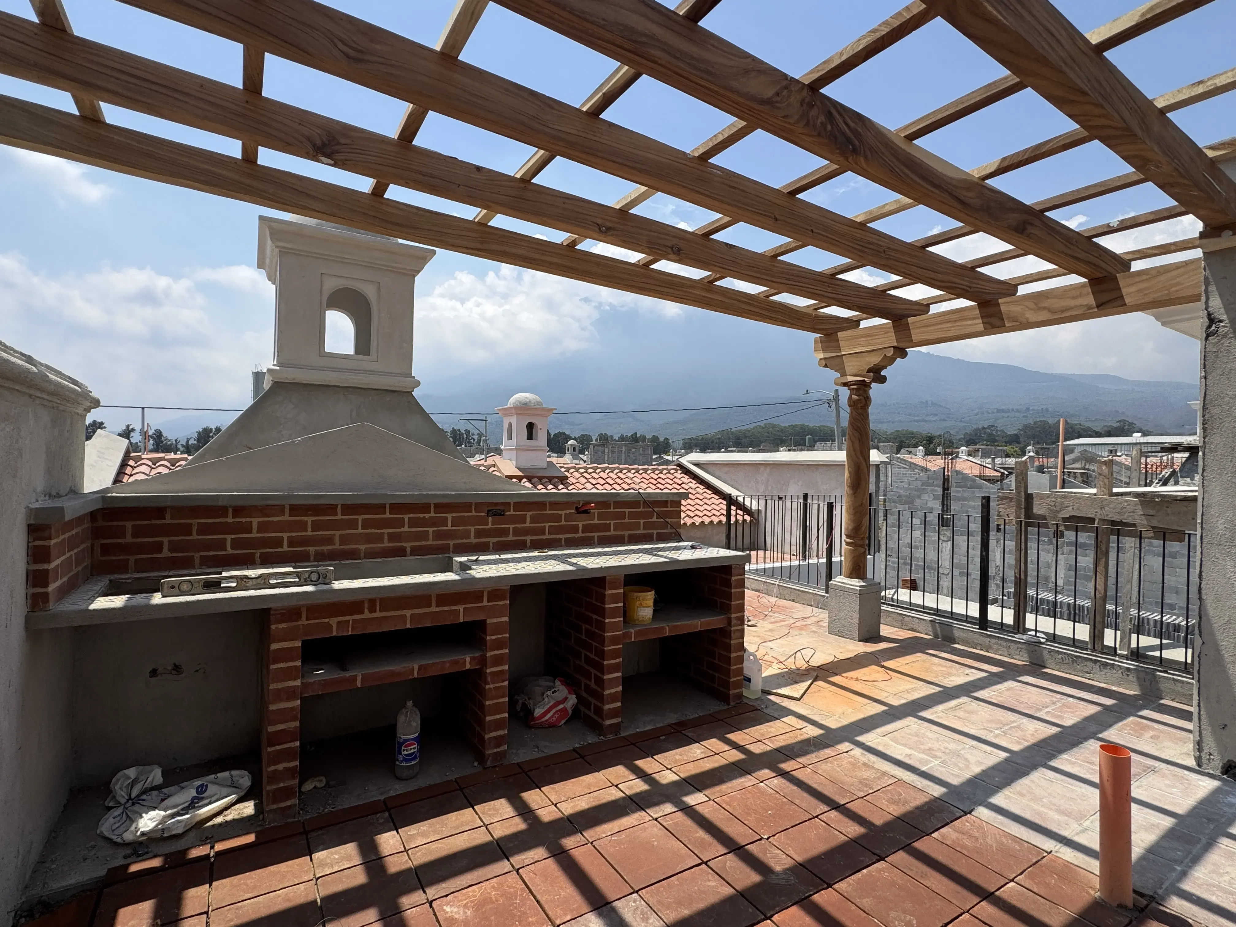 Ten minutes away is the El Encuentro shopping center, and just five more minutes, Plaza Telares. Very close by, you can also enjoy restaurants like Cervecería 14 and Tribu, both with beautiful views of the volcanoes. Surrounding areas also feature renowned educational centers like Montessori School, Boston School, and Antigua International School.