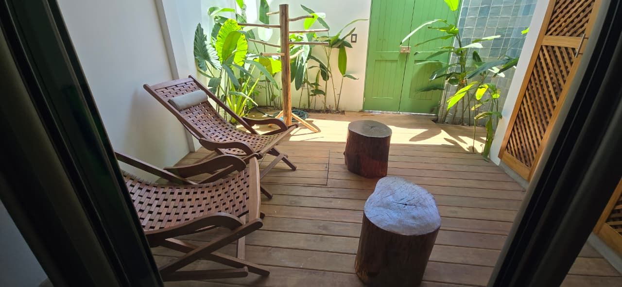 - Wooden deck where the main living room is located.
