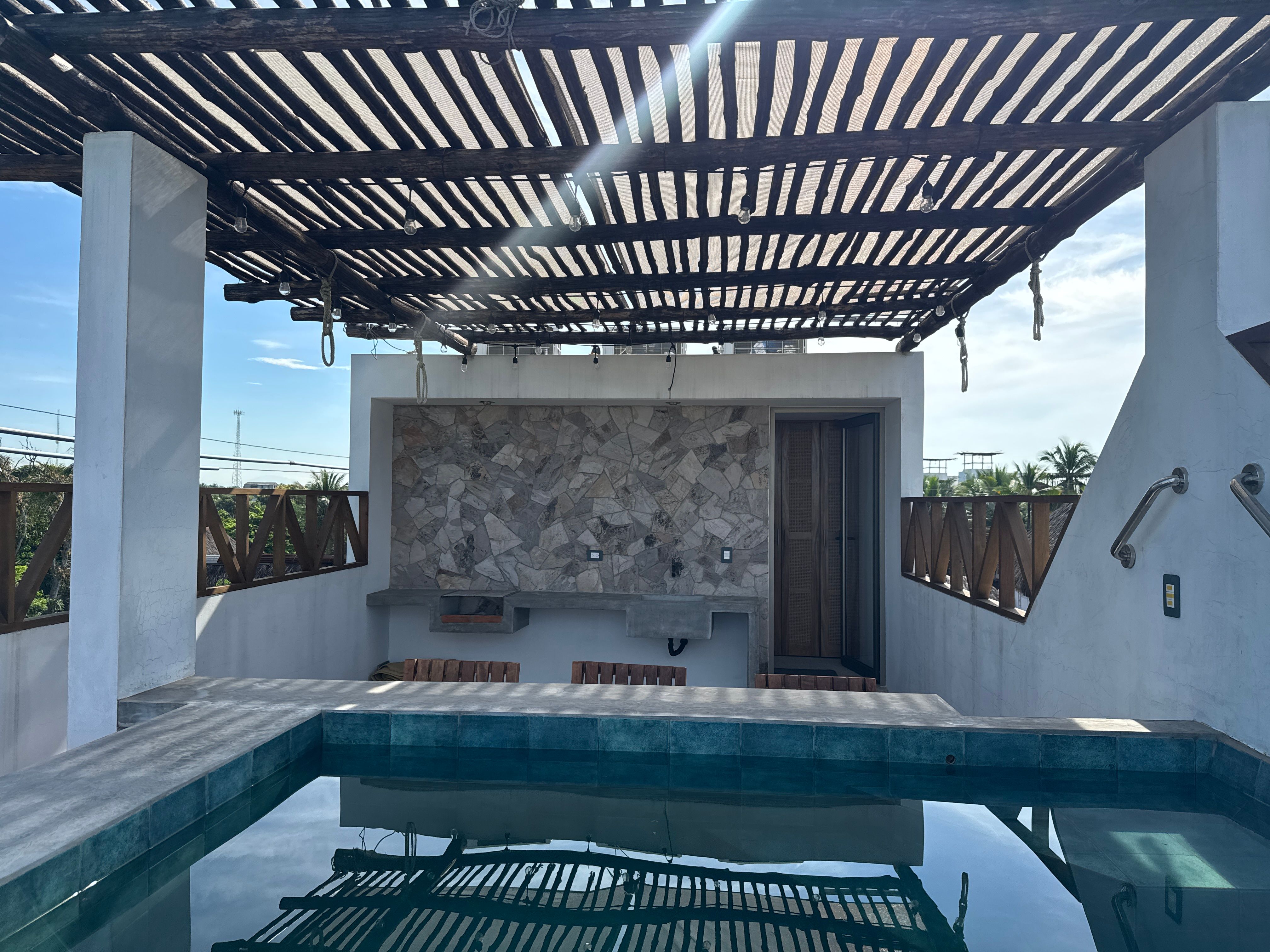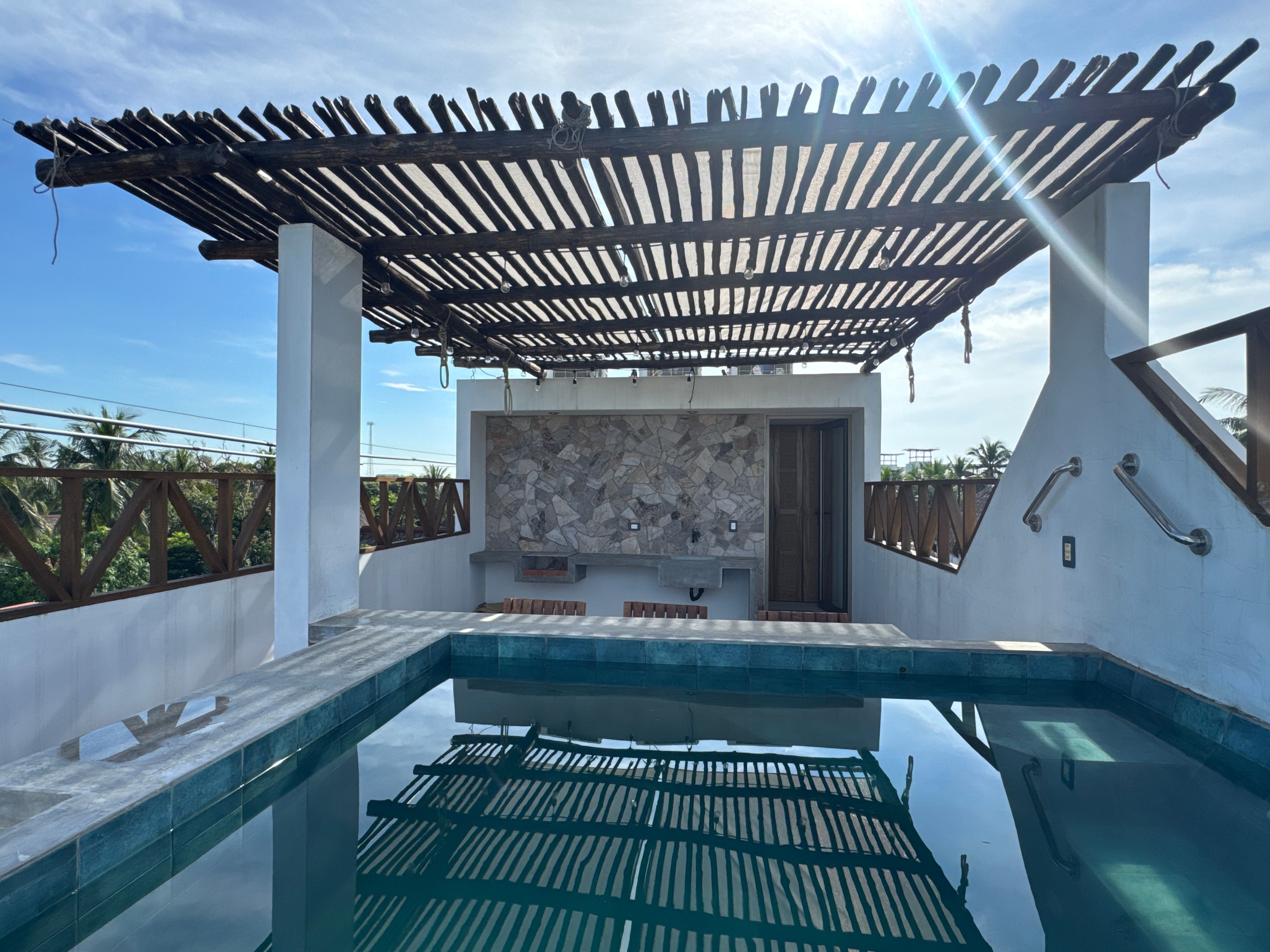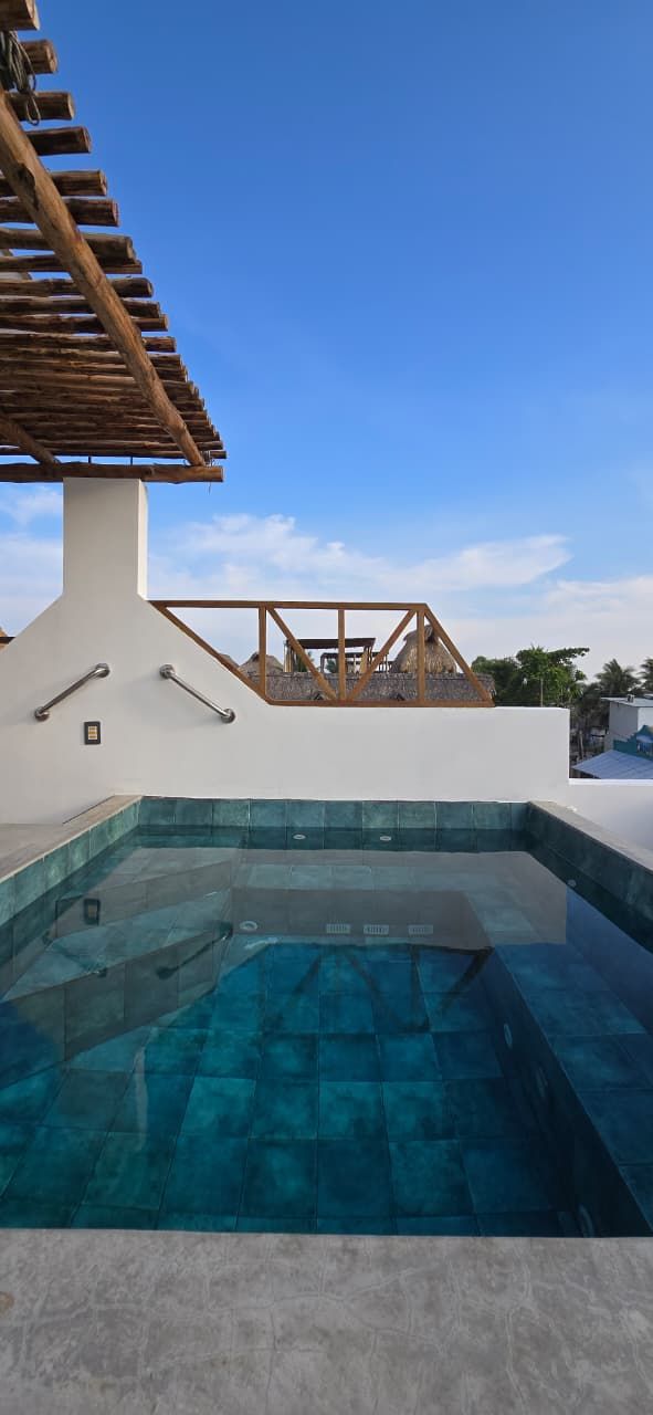 Built on a lot of 13.12 Sq. ft. front by 32.8 Sq. ft. deep with approximately 494.02 Sq. ft. of construction. It has three levels, two bedrooms and a very nice terrace with jacuzzi and social area perfect for a meeting with our favorite people. Its distribution is as follows: