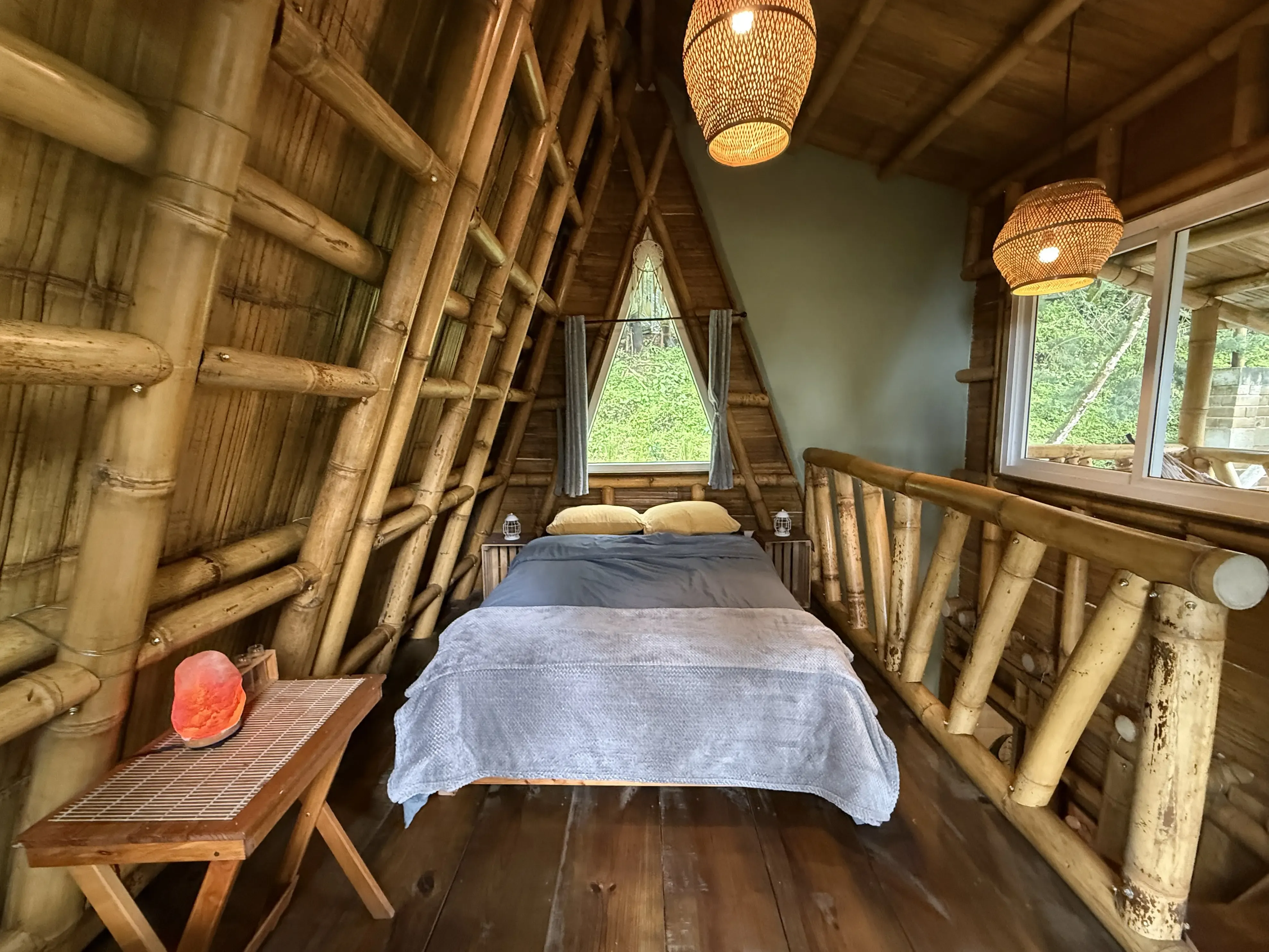 La cabaña cuenta con un sistema de captación de agua y paneles solares, es ideal para una persona o pareja que busca una escapada tranquila con confort y conexión natural.