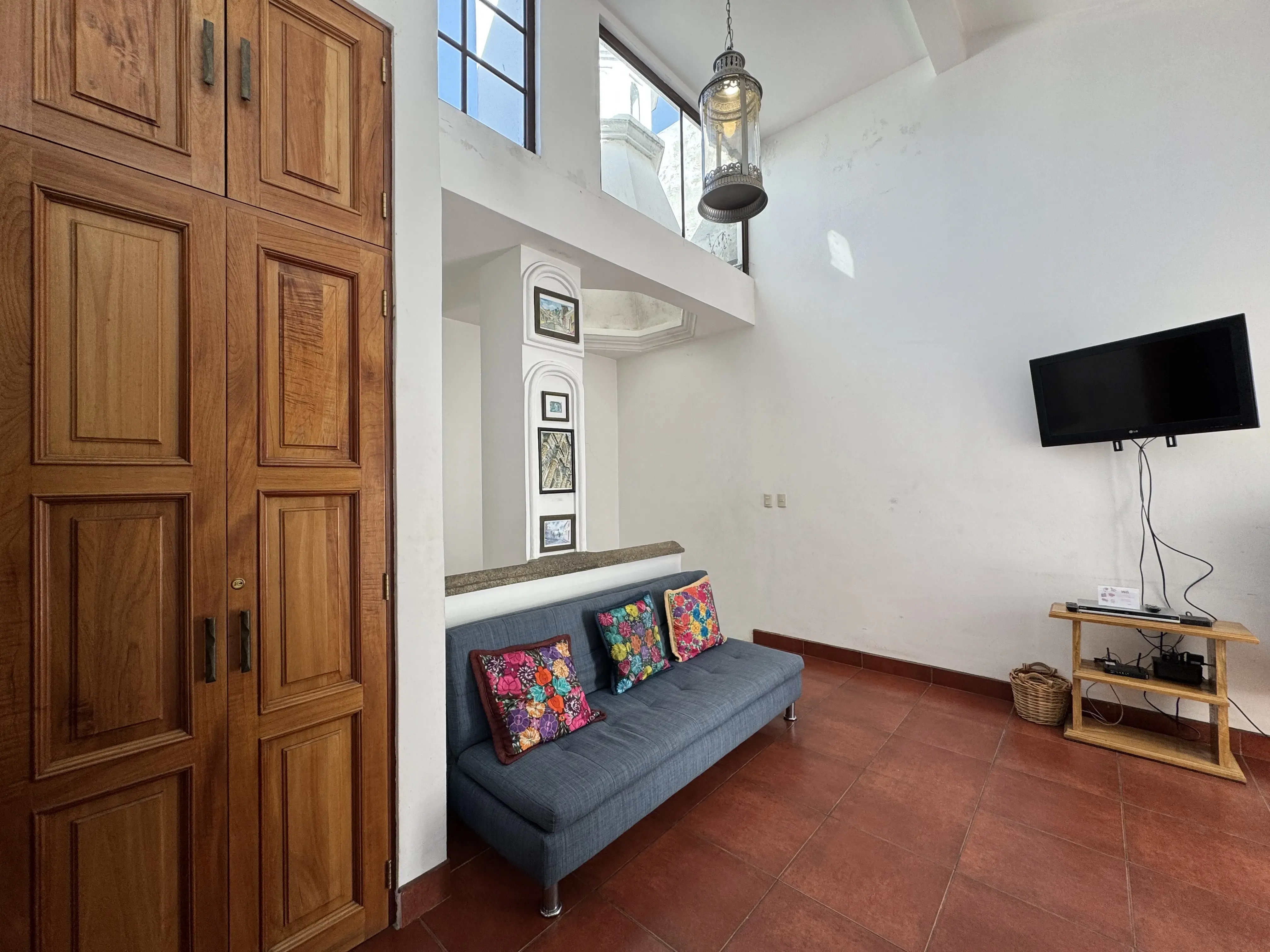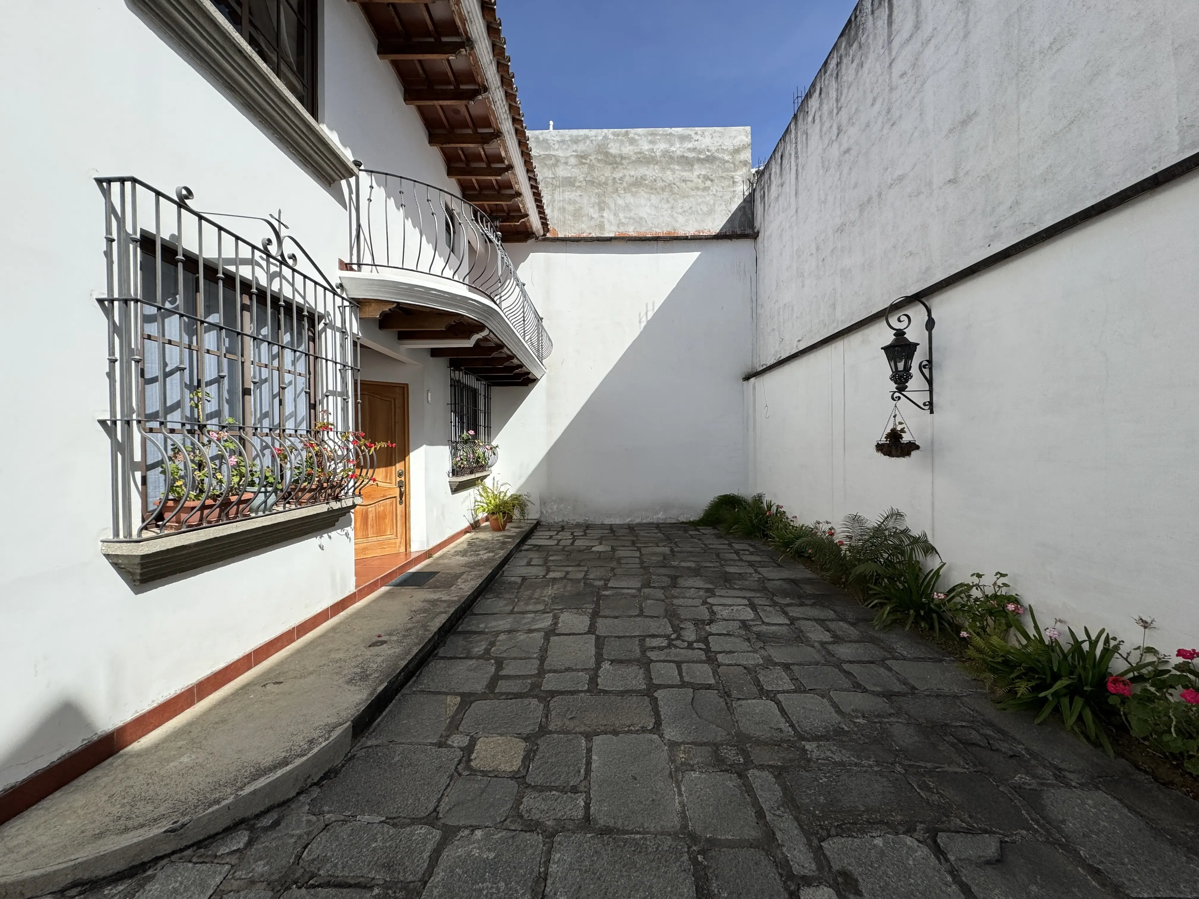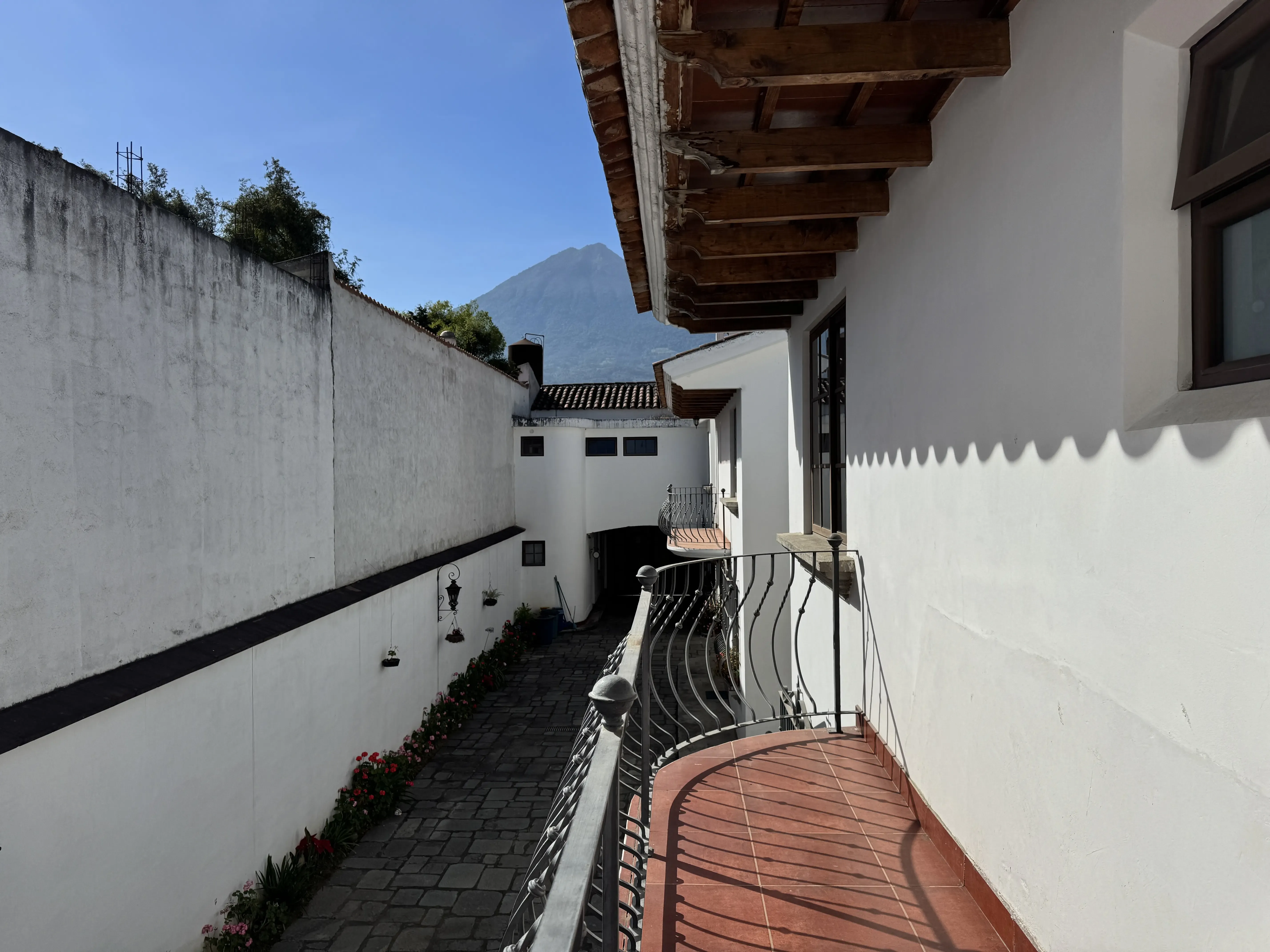 - Ambiente colonial: El exterior del condominio presenta un encantador patio de piedra natural y fachadas blancas con detalles en madera que capturan la esencia de vivir en Antigua Guatemala.