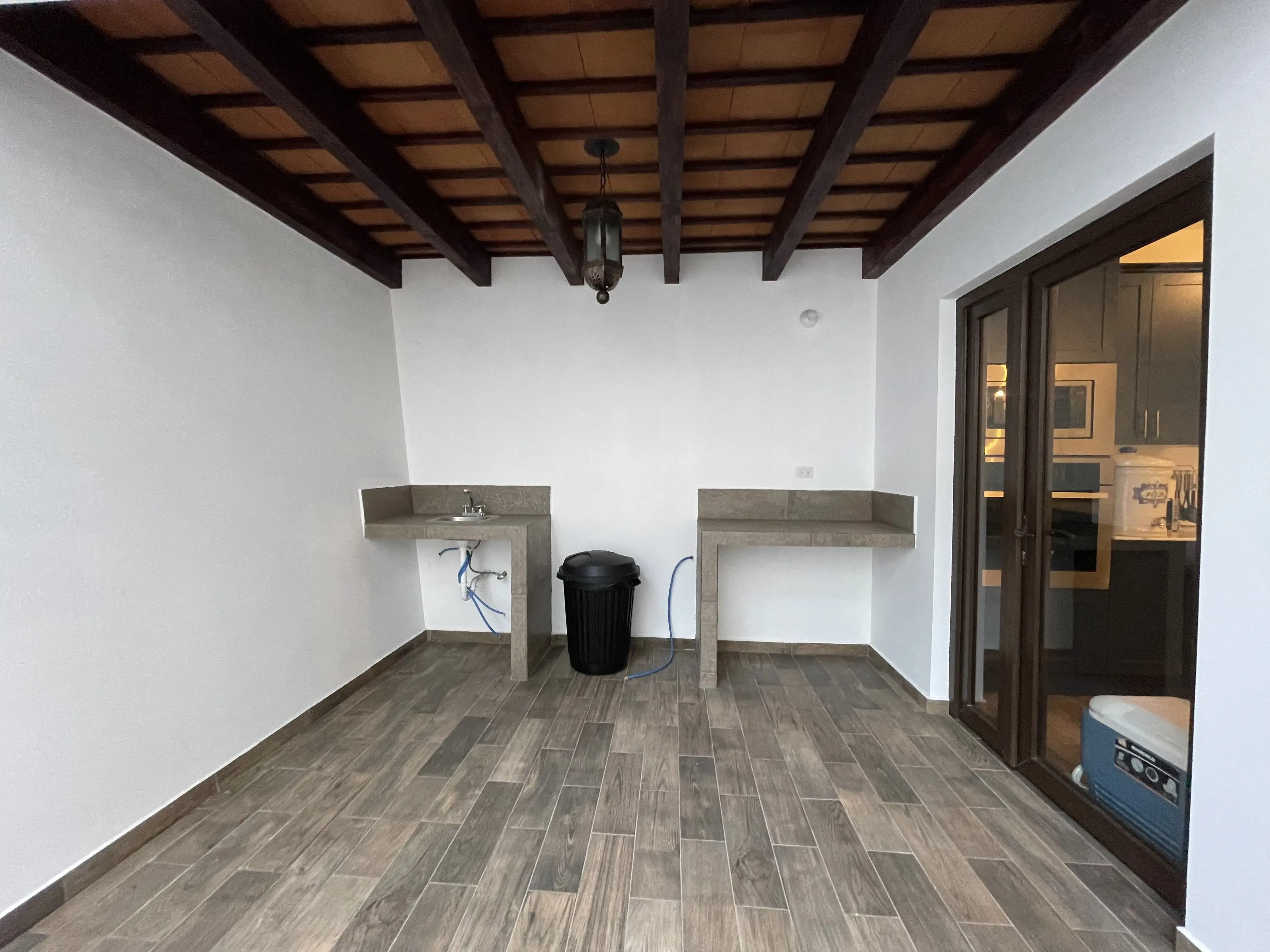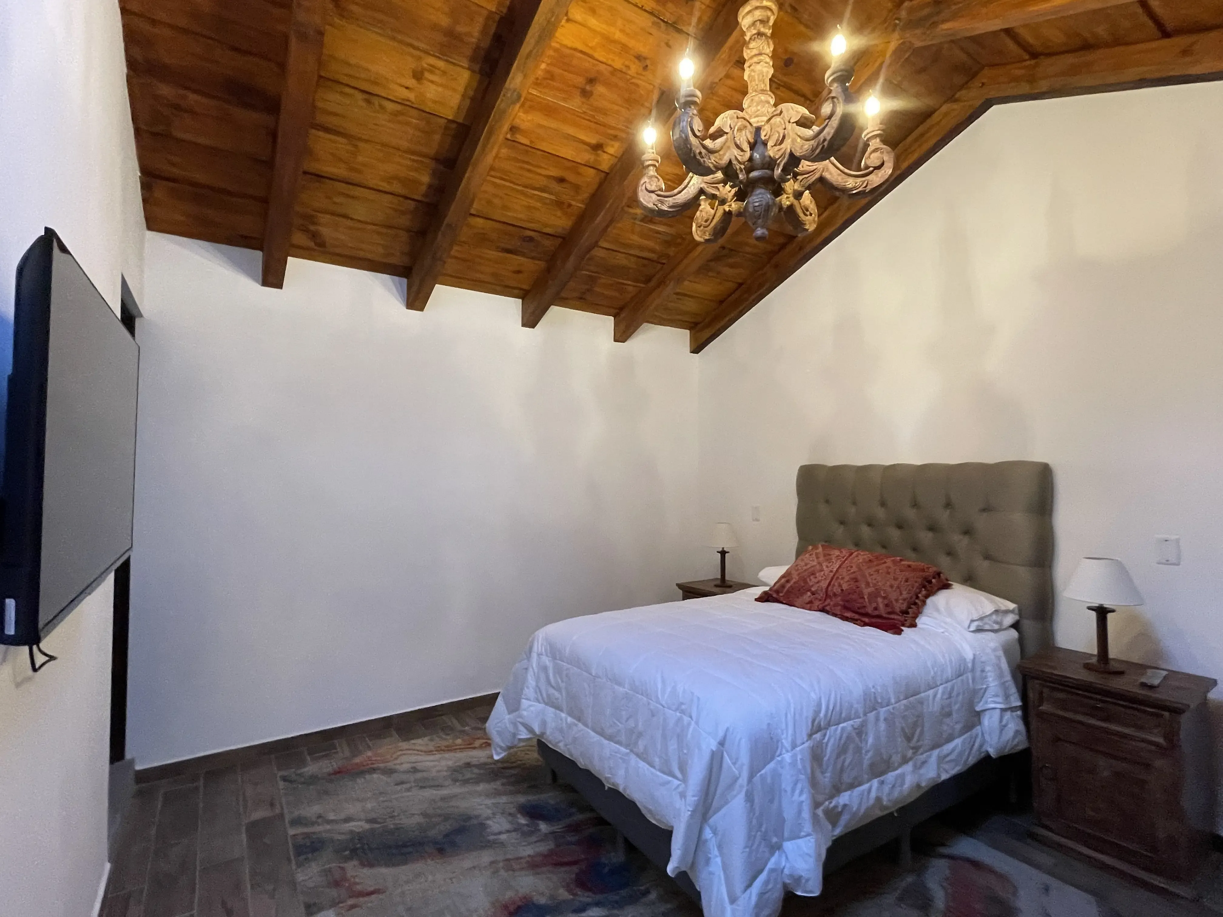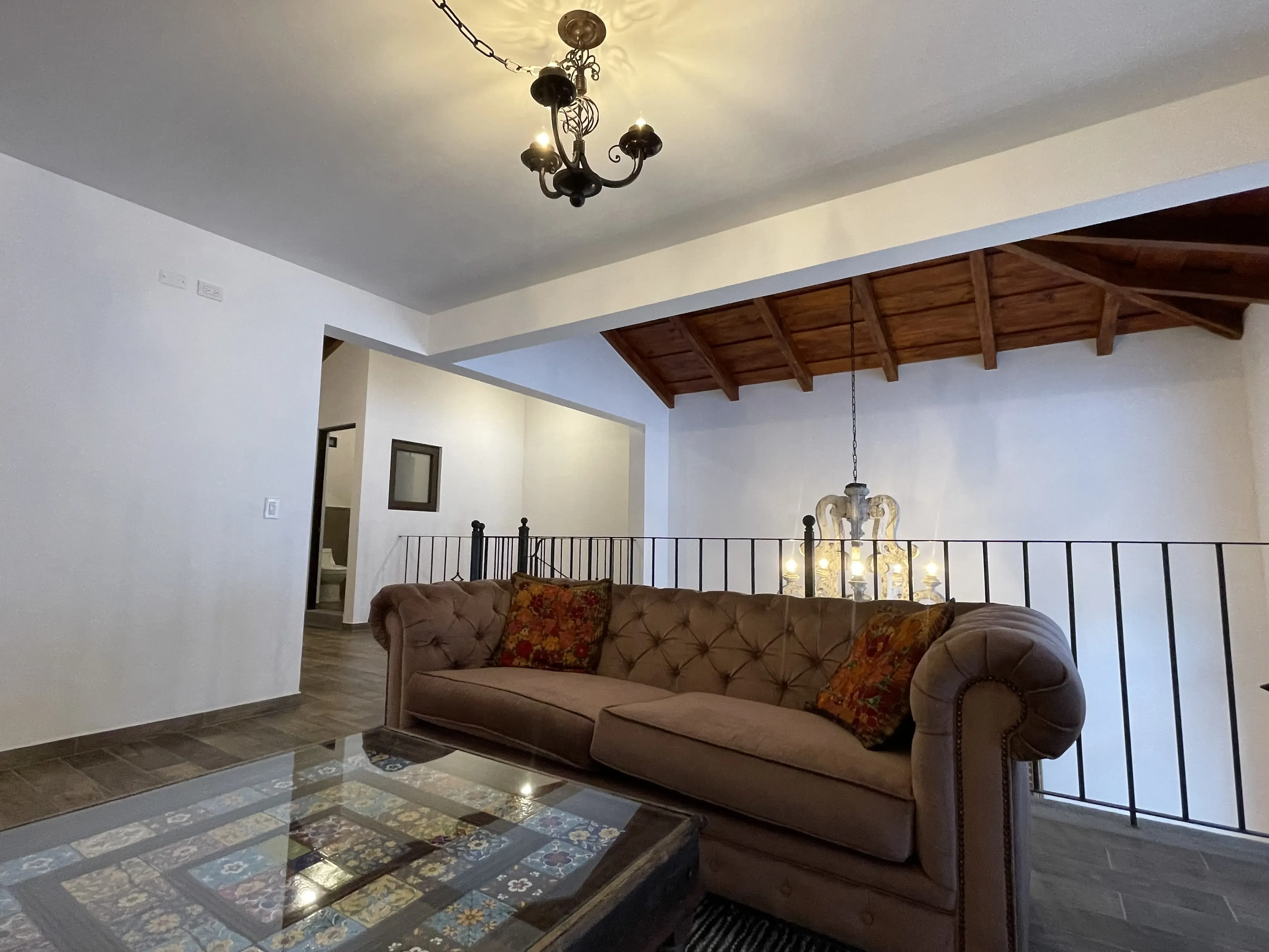 • Área social integrada con sala y comedor bajo un impresionante artesonado de madera