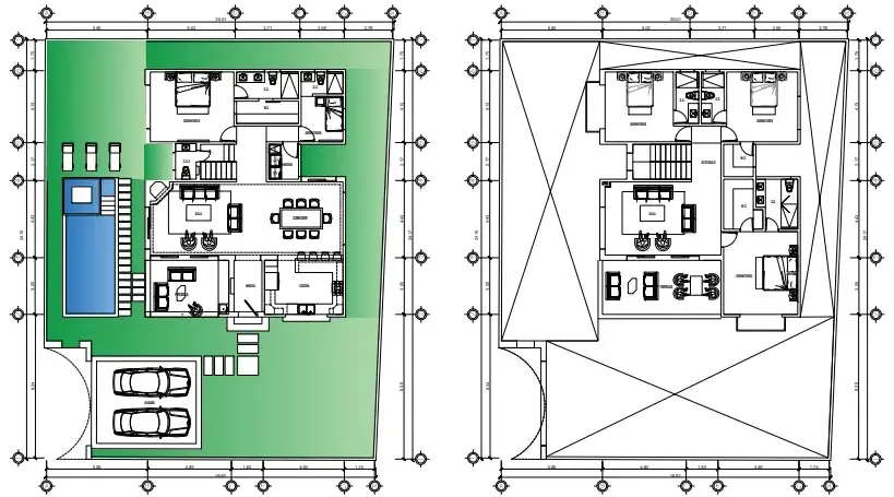 Esta casa se sitúa en un terreno de 24m de frente por 20m de fondo, sumando un total de 480m² (653 v²) de terreno y 300m² de construcción.