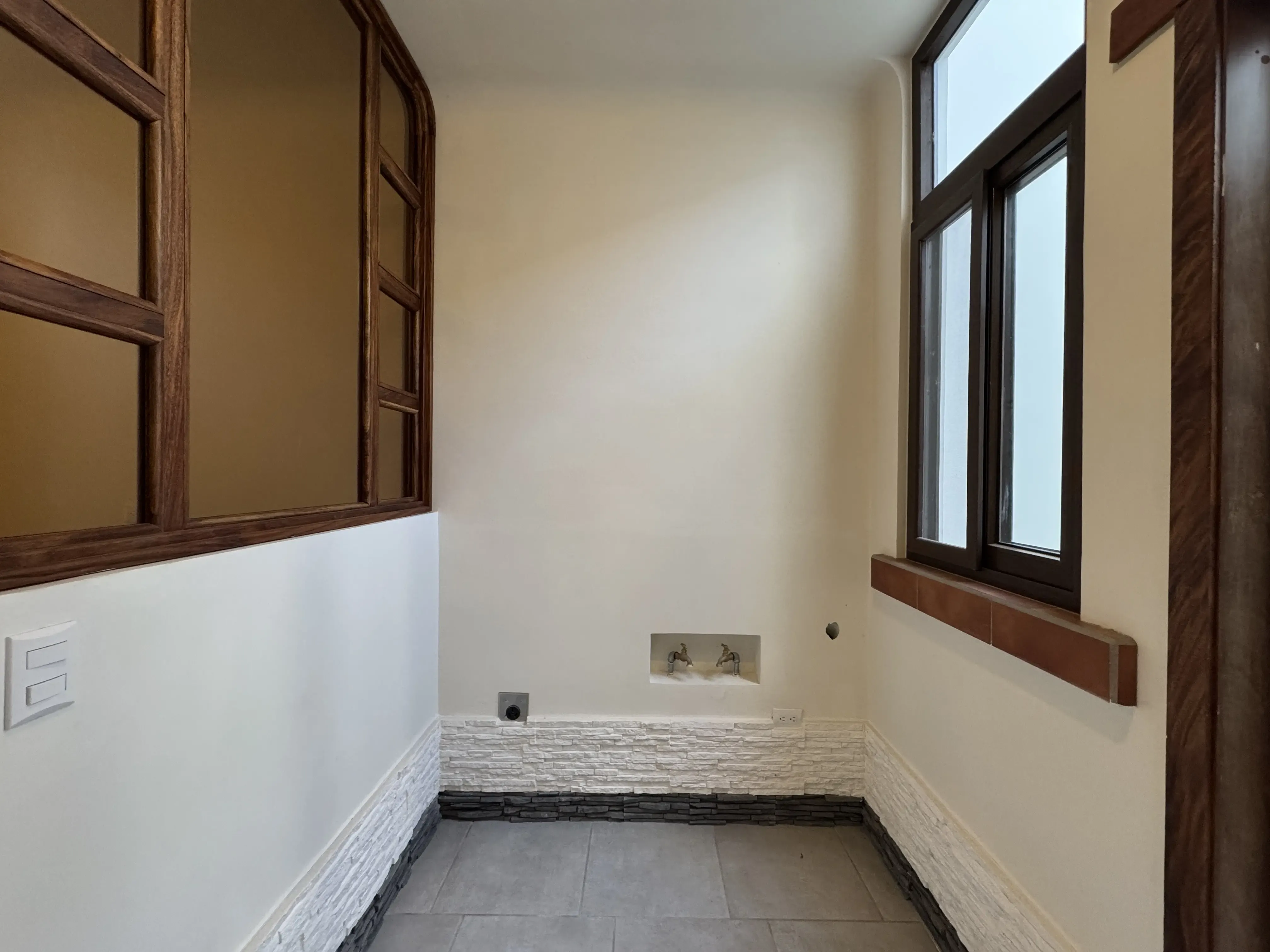 • Ventanería: PVC en acabado imitación madera para un estilo colonial-moderno y eficiente.
