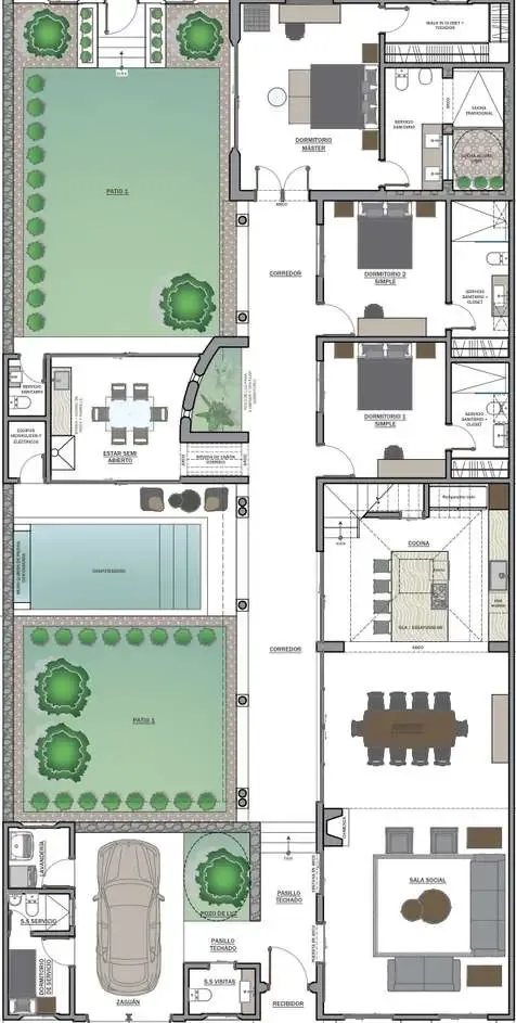 - Patio mayor con búcaro, un elemento decorativo clásico que aporta estilo colonial y un ambiente relajante