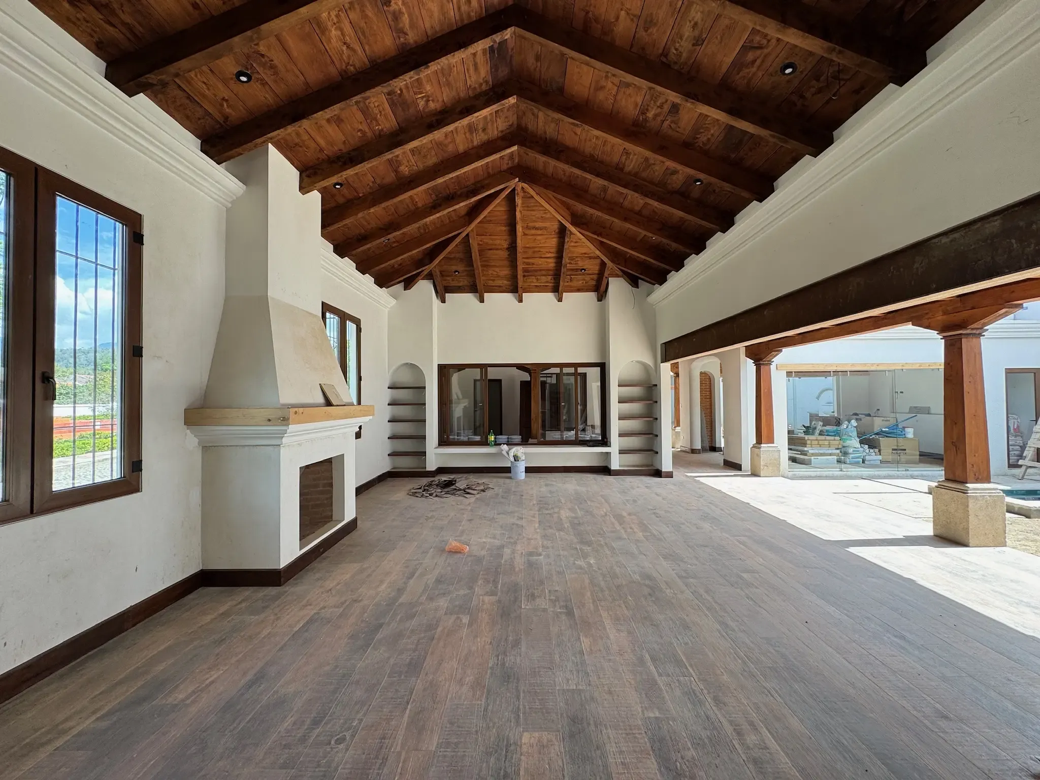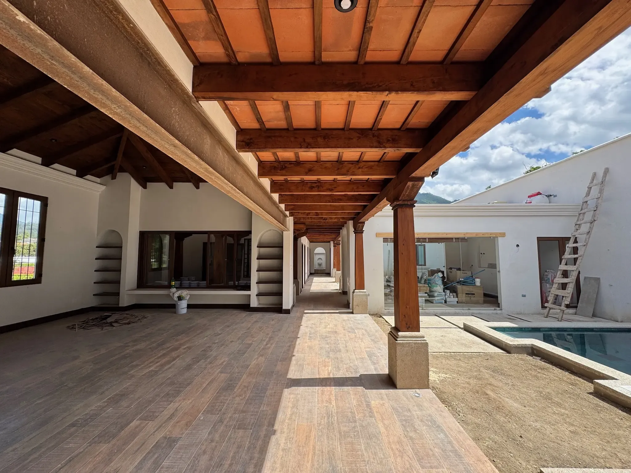 - Vigas de estilo antiguo, alineadas con el diseño colonial antigüeño