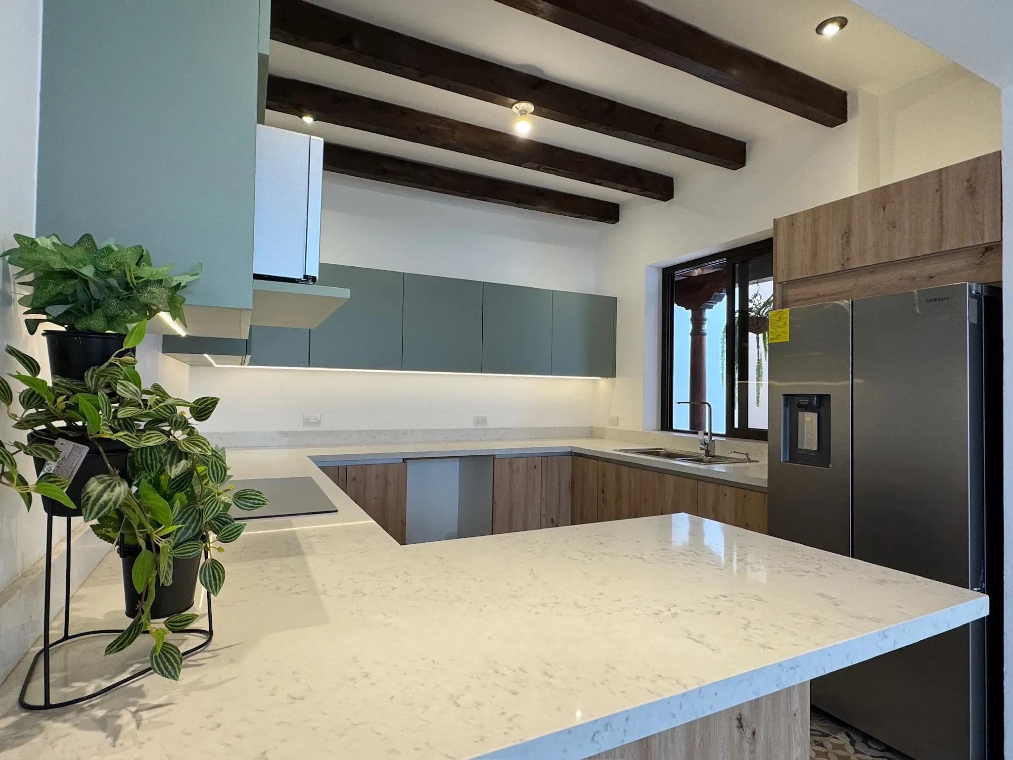 - Cocina de Lujo: Encontramos una cocina equipada con top de cuarzo y una tonalidad atractiva (con opción a personalizar el color).