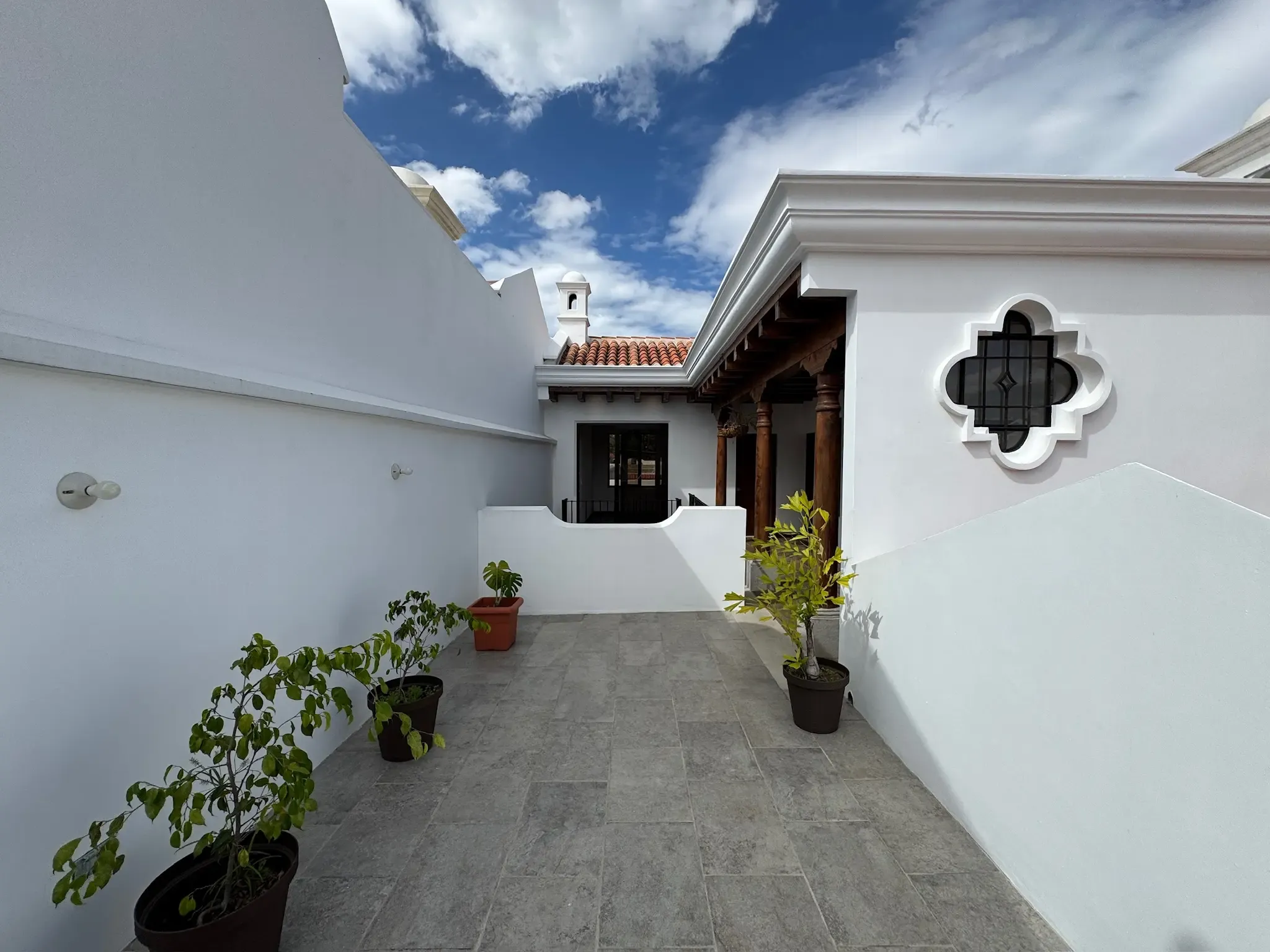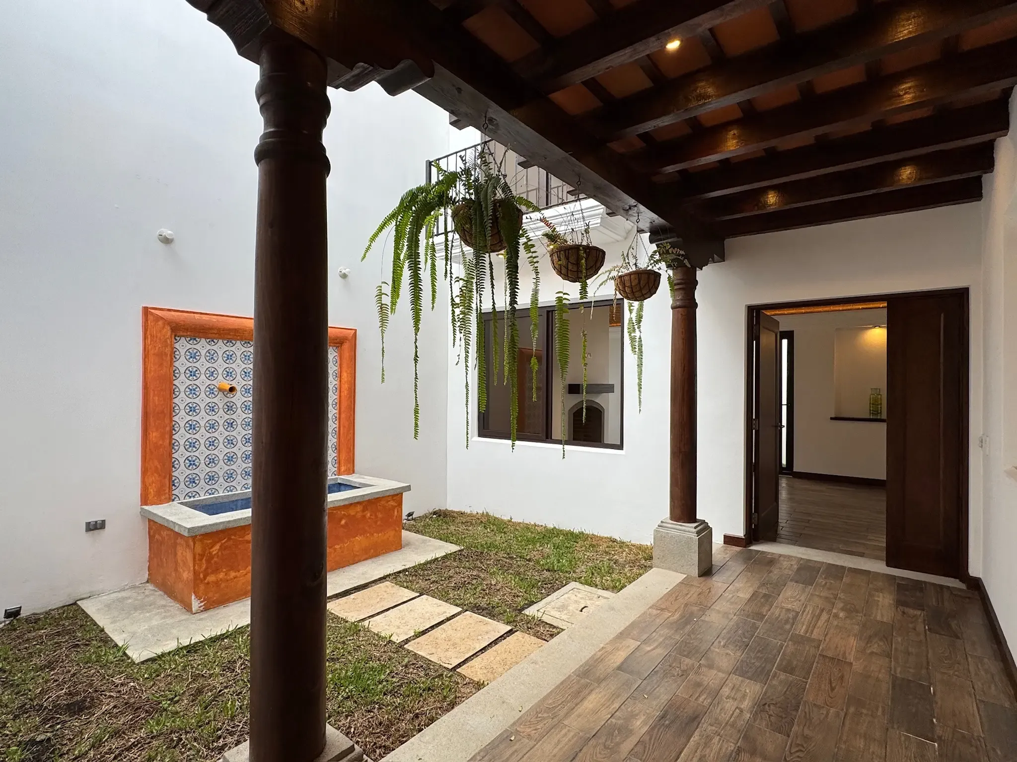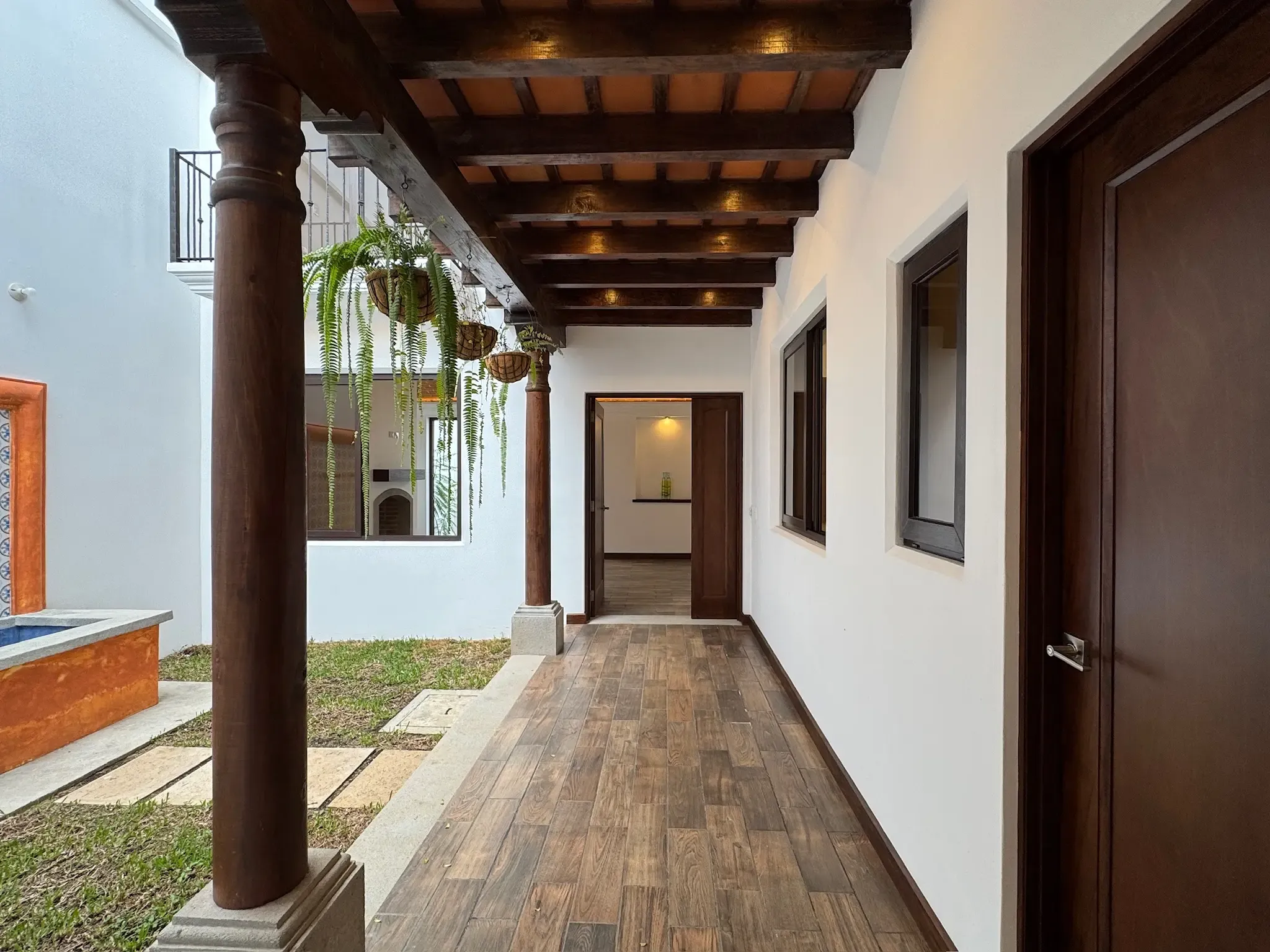 - Detalles en Hierro: Tenemos finos detalles en hierro forjado y pasamanos que combinan madera y hierro.