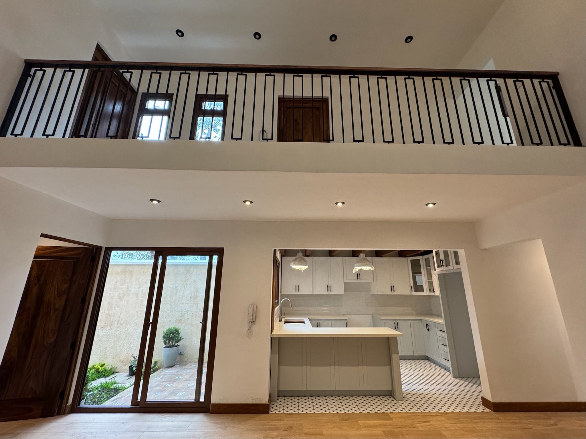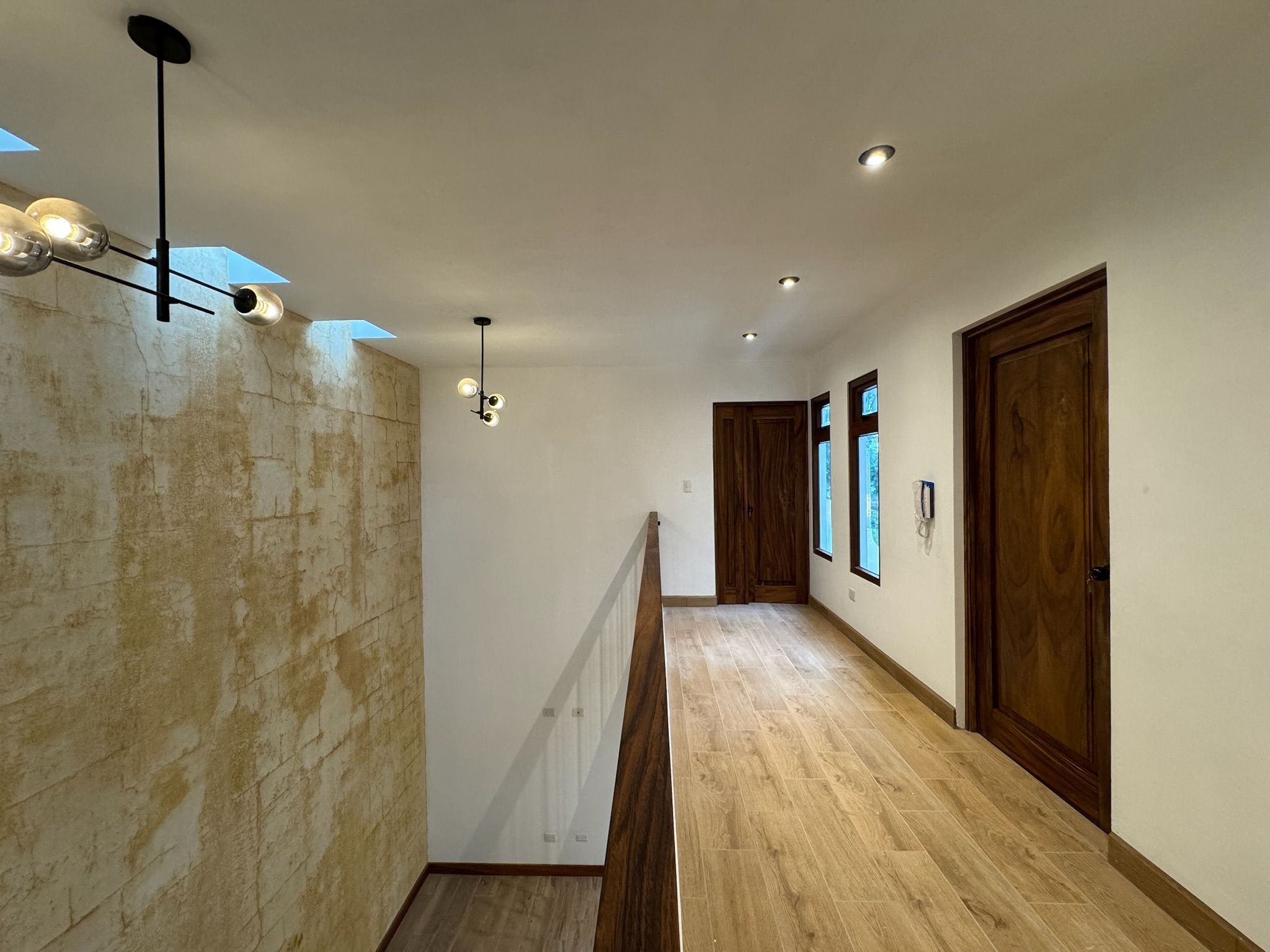 - Pasillo abierto con vista al primer nivel que realza la conexión visual y la entrada de luz natural